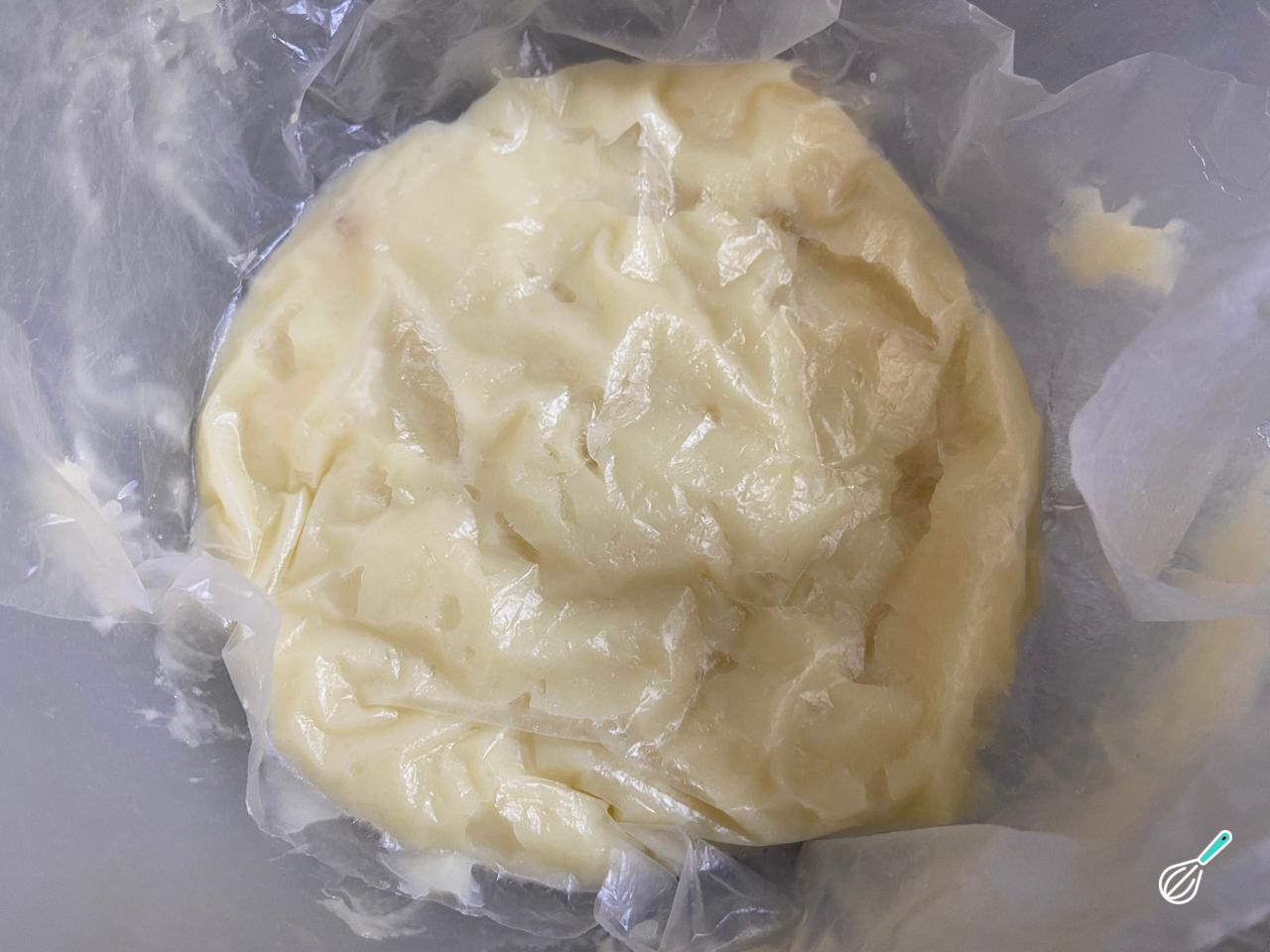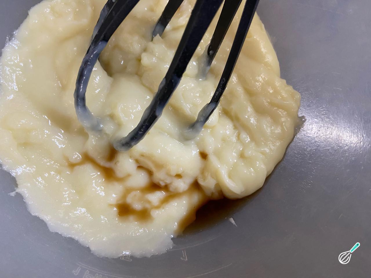 Despeje o creme em uma tigela e bata por mais alguns minutos para baixar a temperatura. Acrescente a essência de baunilha e misture.