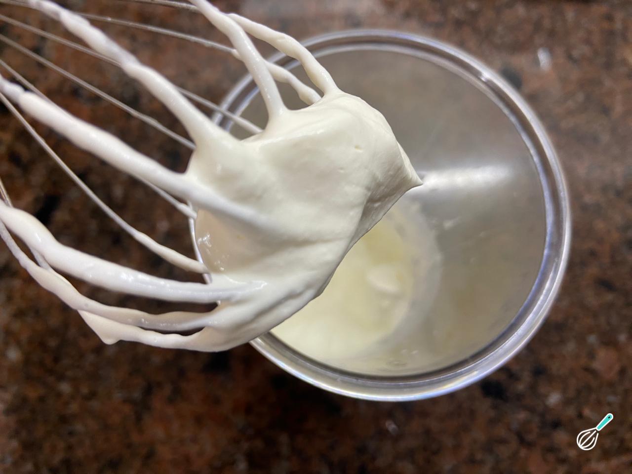 Dica: Para que o creme cresça melhor, ele deve estar bem frio. Lembre-se de que os cremes com mais de 30 ou 35% de gordura são usados para confeitaria, ou seja, não use os cremes mais leves que são vendidos para cozinhar.