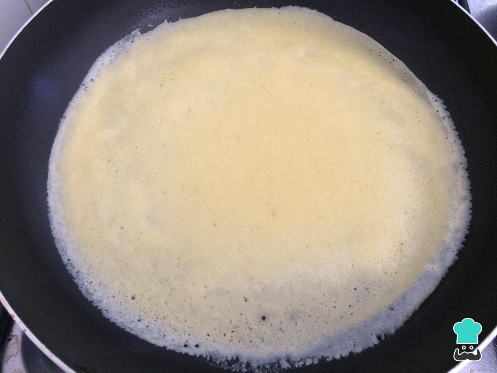 Para fazer os crepes, misture a farinha com o ovo, o leite e uma pitada de açúcar. O resultado deve ser uma homogênea massa e ligeiramente espessa.