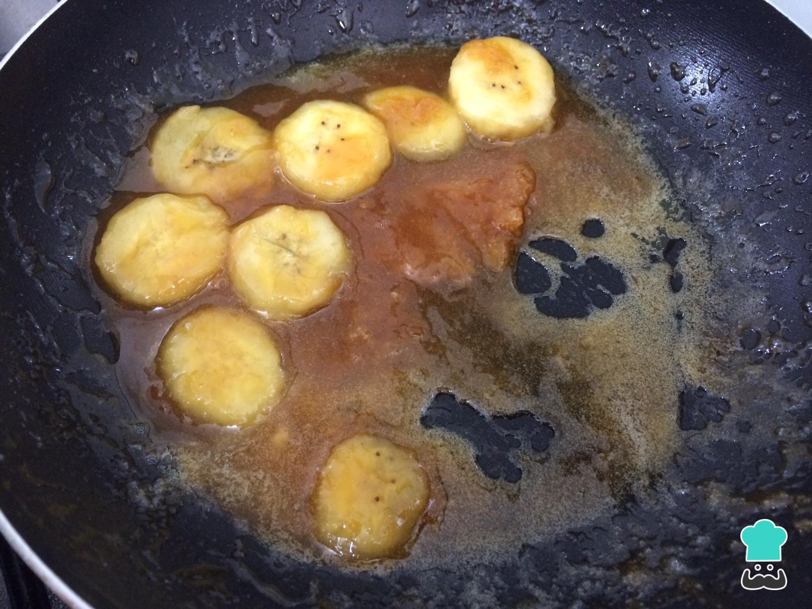Quando os ingredientes anteriores estiverem bem misturados, acrescente a banana cortada em rodelas e cozinhe em fogo baixo por 5 minutos.