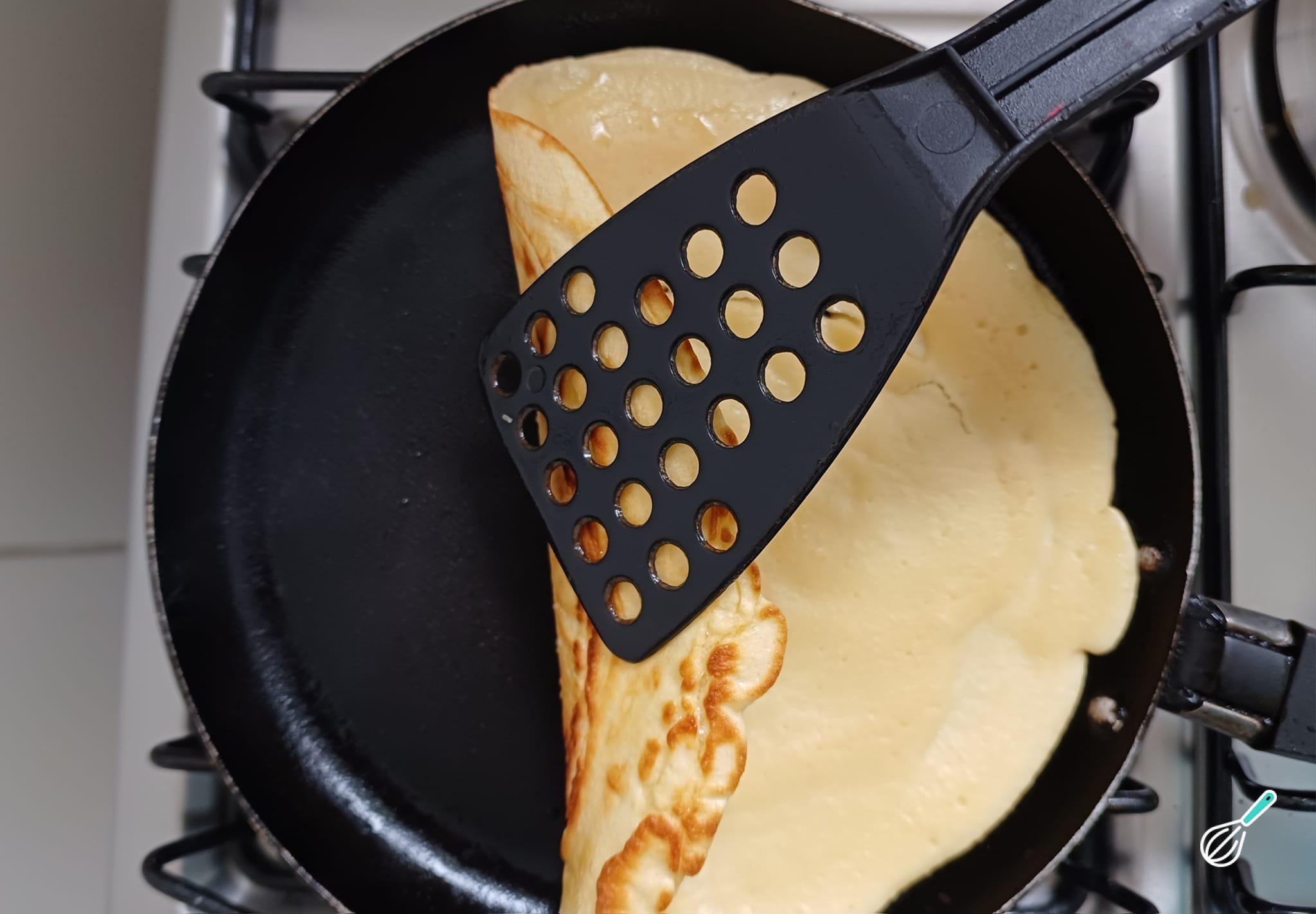 Quando a parte de baixo da massa estiver corada, vire o lado e deixe-a cozinhar por mais 1 e 1/2 minuto.