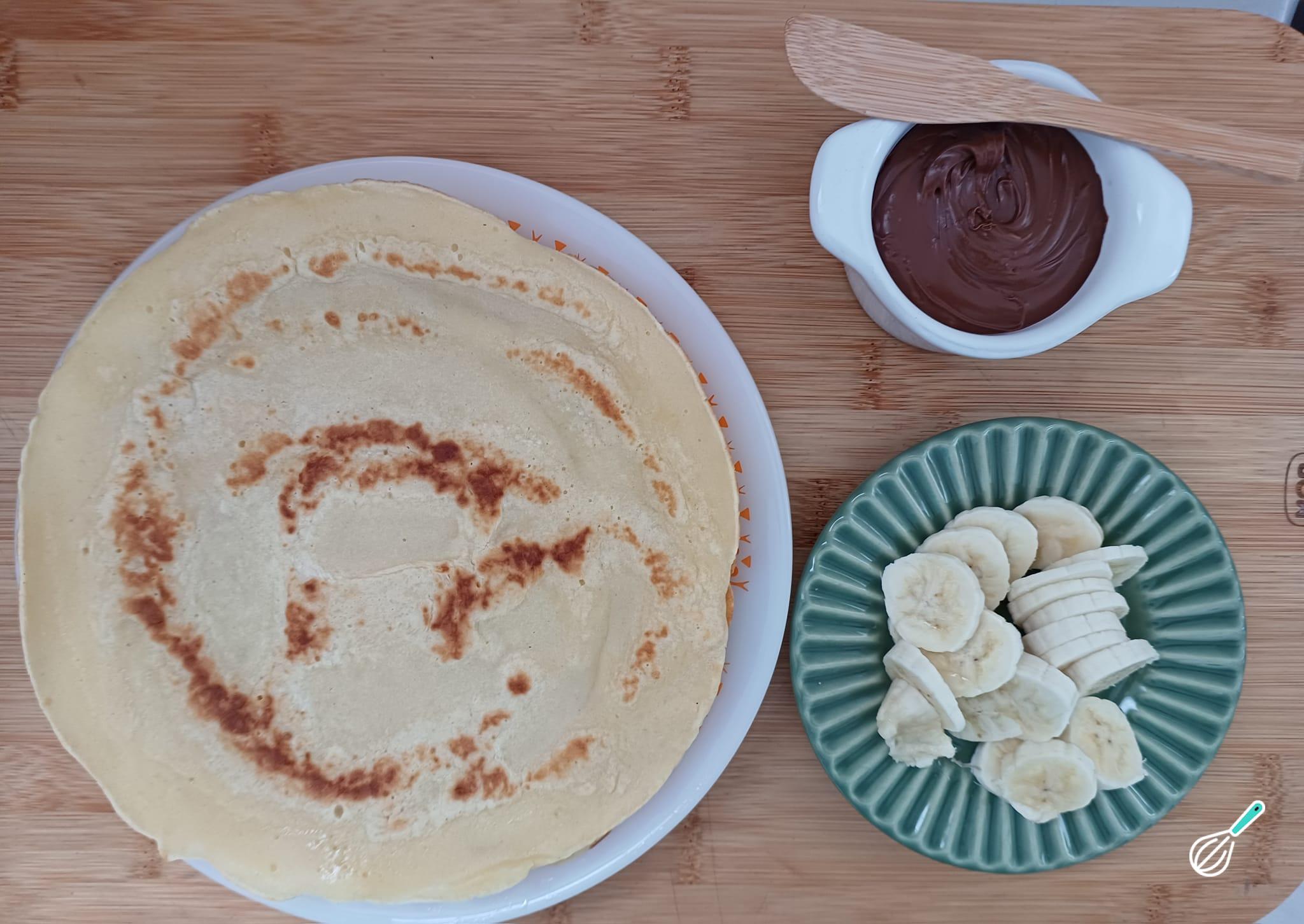 Comece separando todos os ingredientes necessários para o preparo do crepe com nutella.