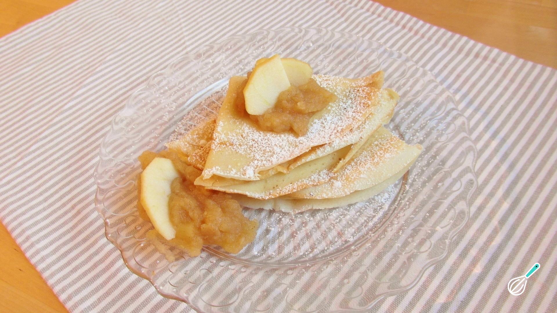 Quando os seus crepes franceses doces estiverem prontos, você pode servir com o que mais gostar: creme de chocolate, mel, geleia de frutas, sorvete, etc. No meu caso polvilhei açúcar de confeiteiro e acompanhei com purê de maçã e canela.