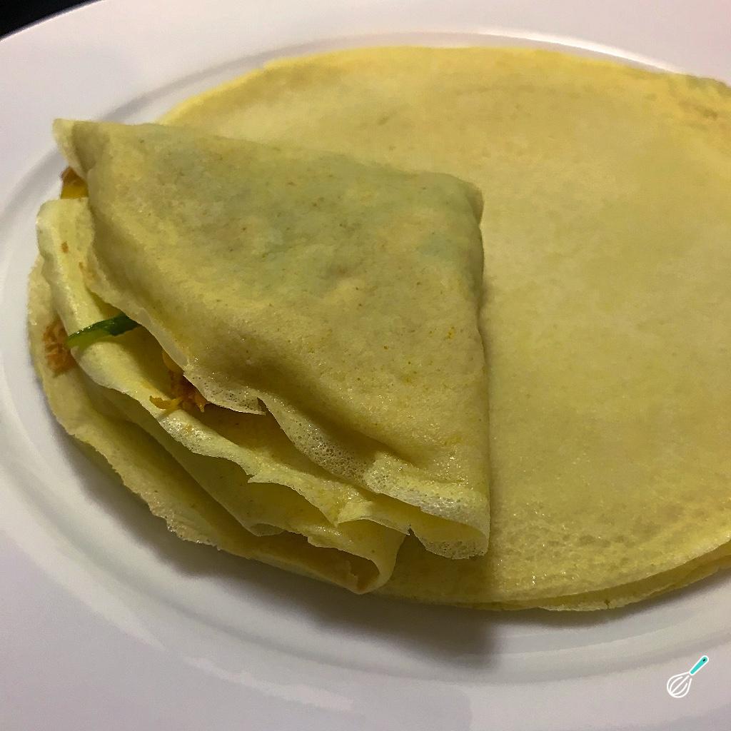 Dobre novamente ao meio e seu crepe suíço salgado está prontinho! Faça o mesmo com as outras folhas de crepe e já pode saborear essa delícia sem glúten!