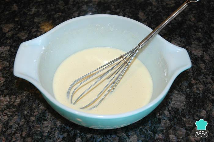 Acrescente o leite e os ovos batidos e misture tudo muito bem com um batedor ou no liquidificador.