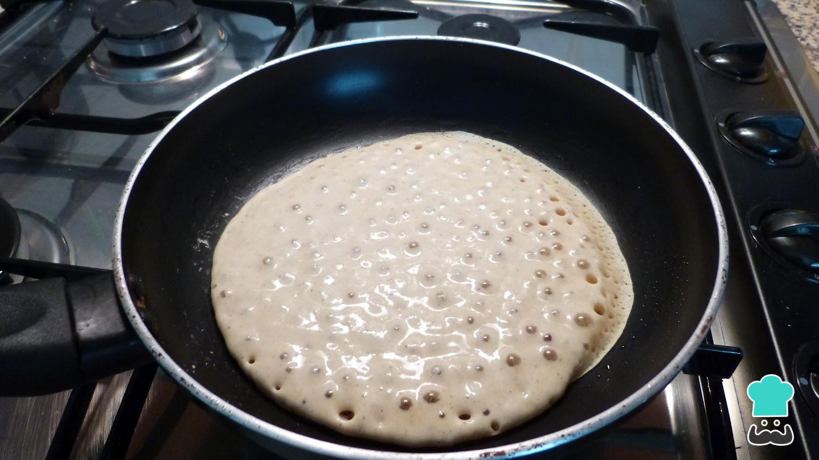Leve ao fogo médio uma frigideira com a manteiga ou o óleo e coloque uma pequena porção da massa de crepe sem glúten. Cozinhe até começar borbulhando, e vire ao contrário.