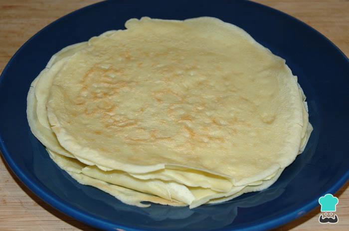 Dica: O ideal é que os crepes fiquem bem finos, por isso use uma frigideira grande ou coloque pouca massa.