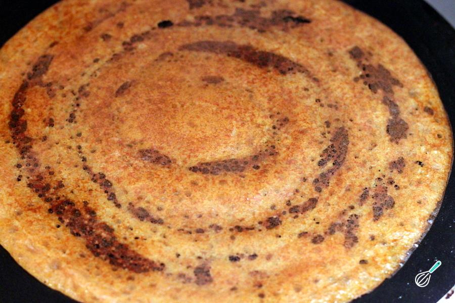 Coloque a mistura em uma panela quente untada com um pouco de óleo PAM. Quando notar que o lado inferior cozinhou, vire a crepioca de batata doce. Assim que estiver pronto, retire e recheie com a ricota grelhada na frigideira.