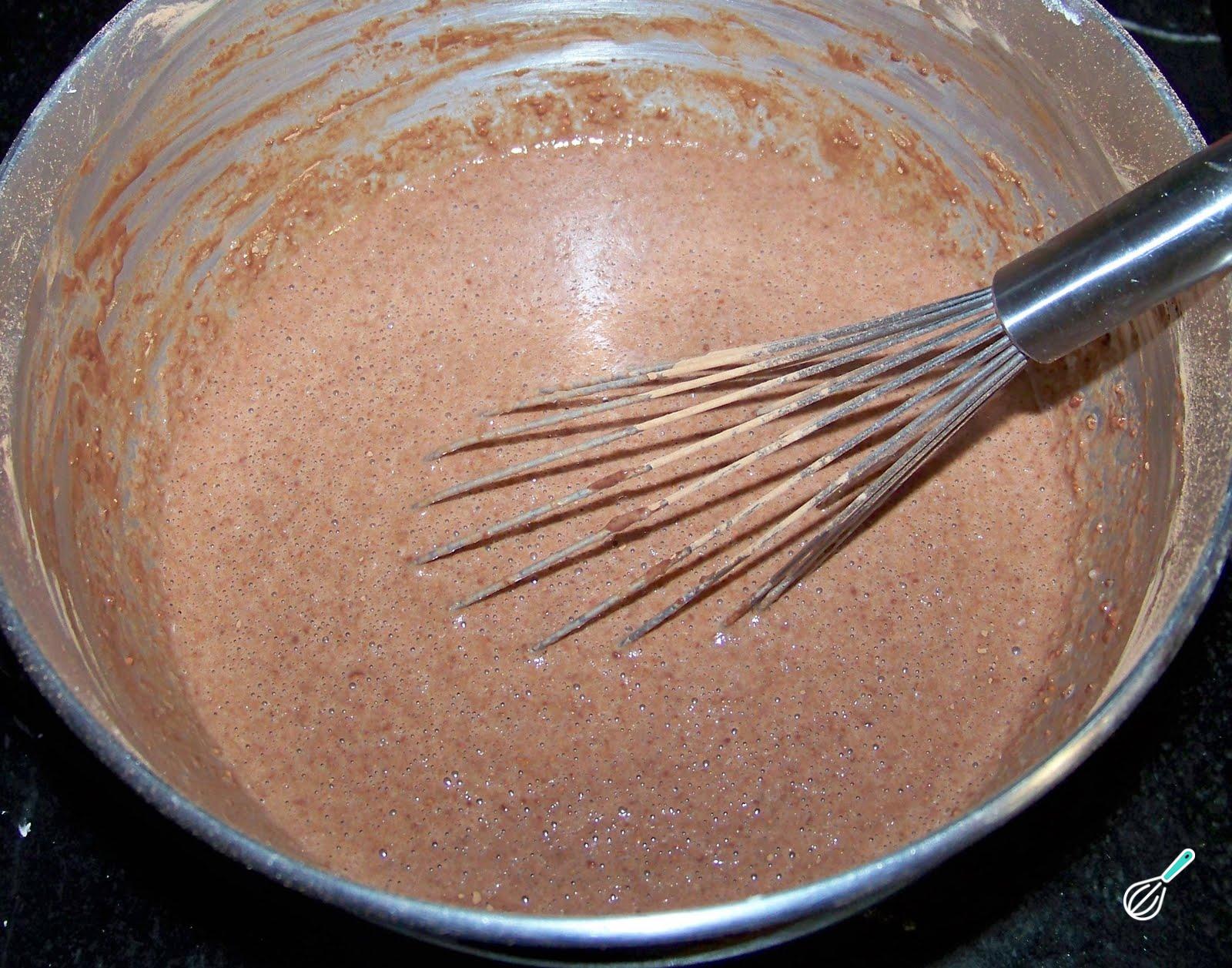Para preparar essa crepioca de chocolate fit, comece por misturar 2 colheres de sopa de whey de chocolate, 3 claras de ovo e 4 colheres de sopa de tapioca até obter uma massa homogênea.