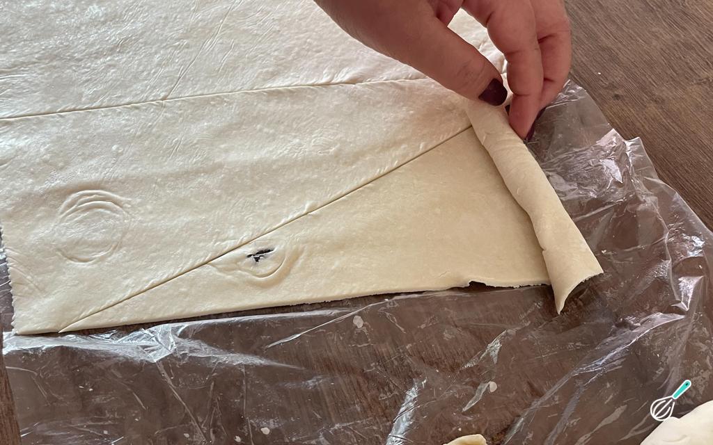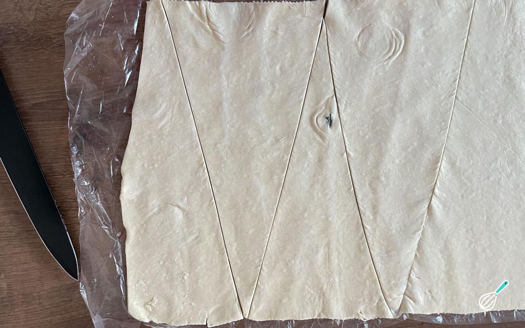 - Corte triângulos iguais: Ao cortar a massa em triângulos para formar os croissants, certifique-se de que todos os triângulos tenham o mesmo tamanho para que os croissants assem de maneira uniforme.