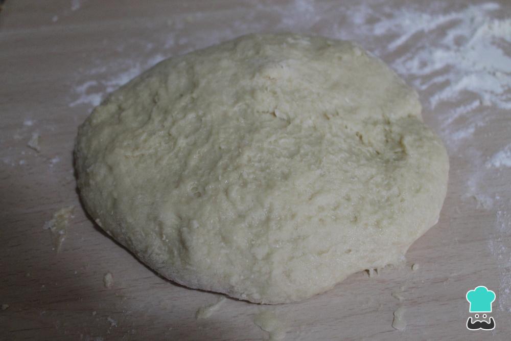 Dica: Se a massa continuar muito mole e grudando nas mãos ao fim dos 10 minutos, adicione um pouco mais de farinha.
