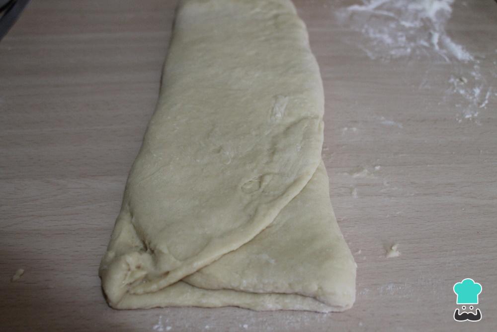Dica: Ao repetirmos este procedimento tanta vez conseguimos que a massa fique mais folhada, por isso não deixe de fazer!