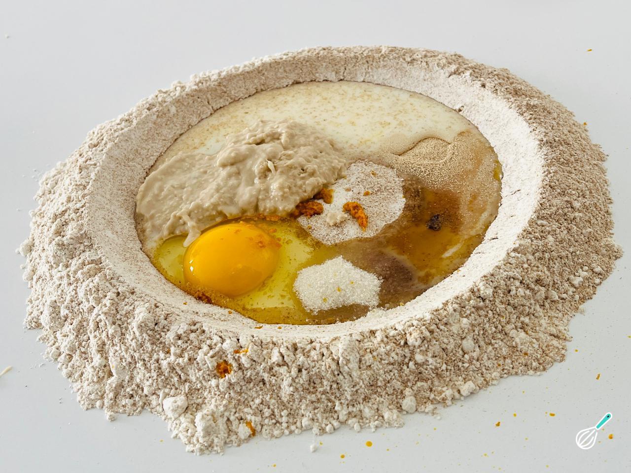 Dissolva os ingredientes líquidos e acrescente a farinha aos poucos para começar a formar uma massa.