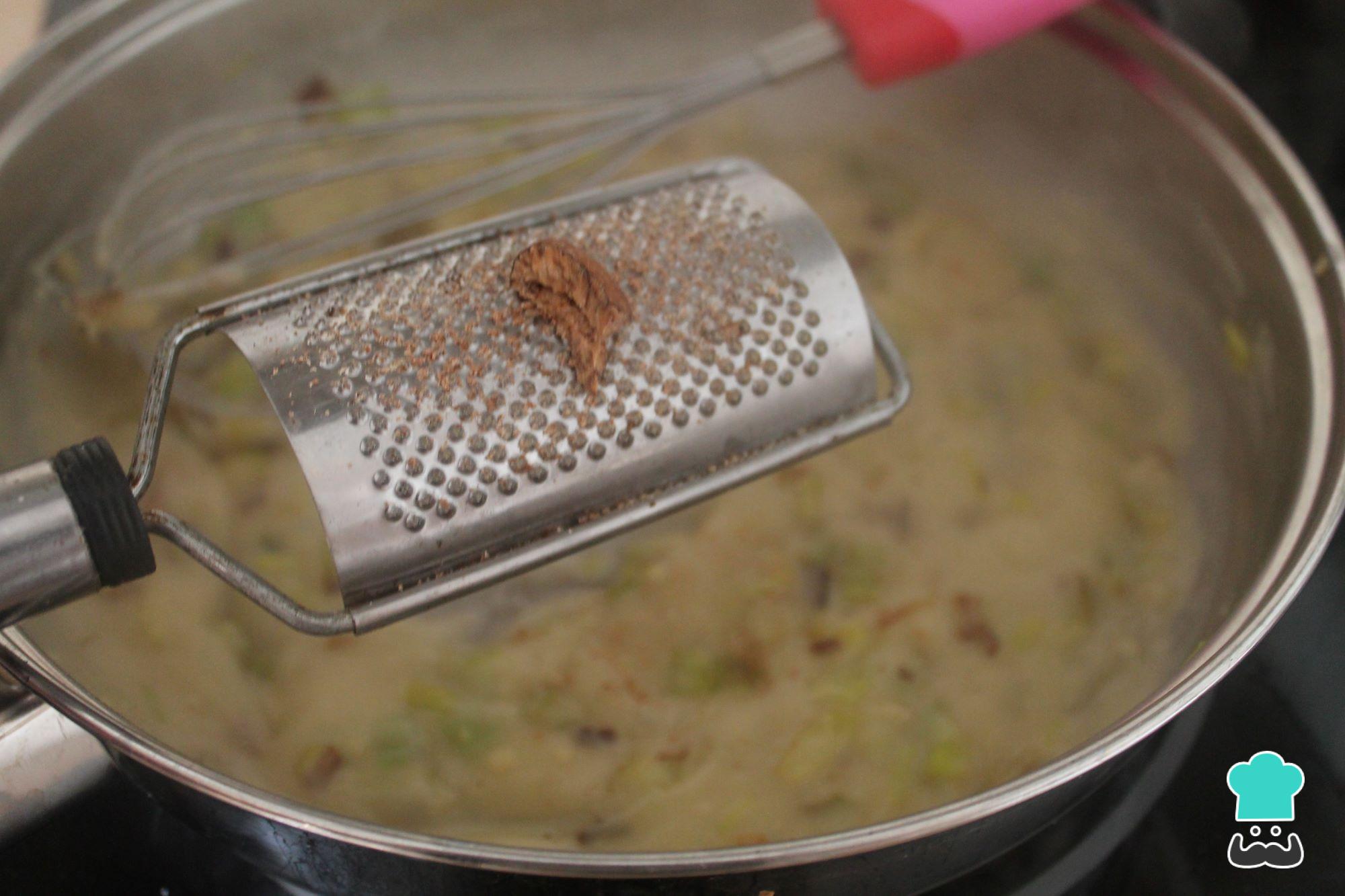 Adicione também um pouco de sal e uma pitada de noz-moscada.