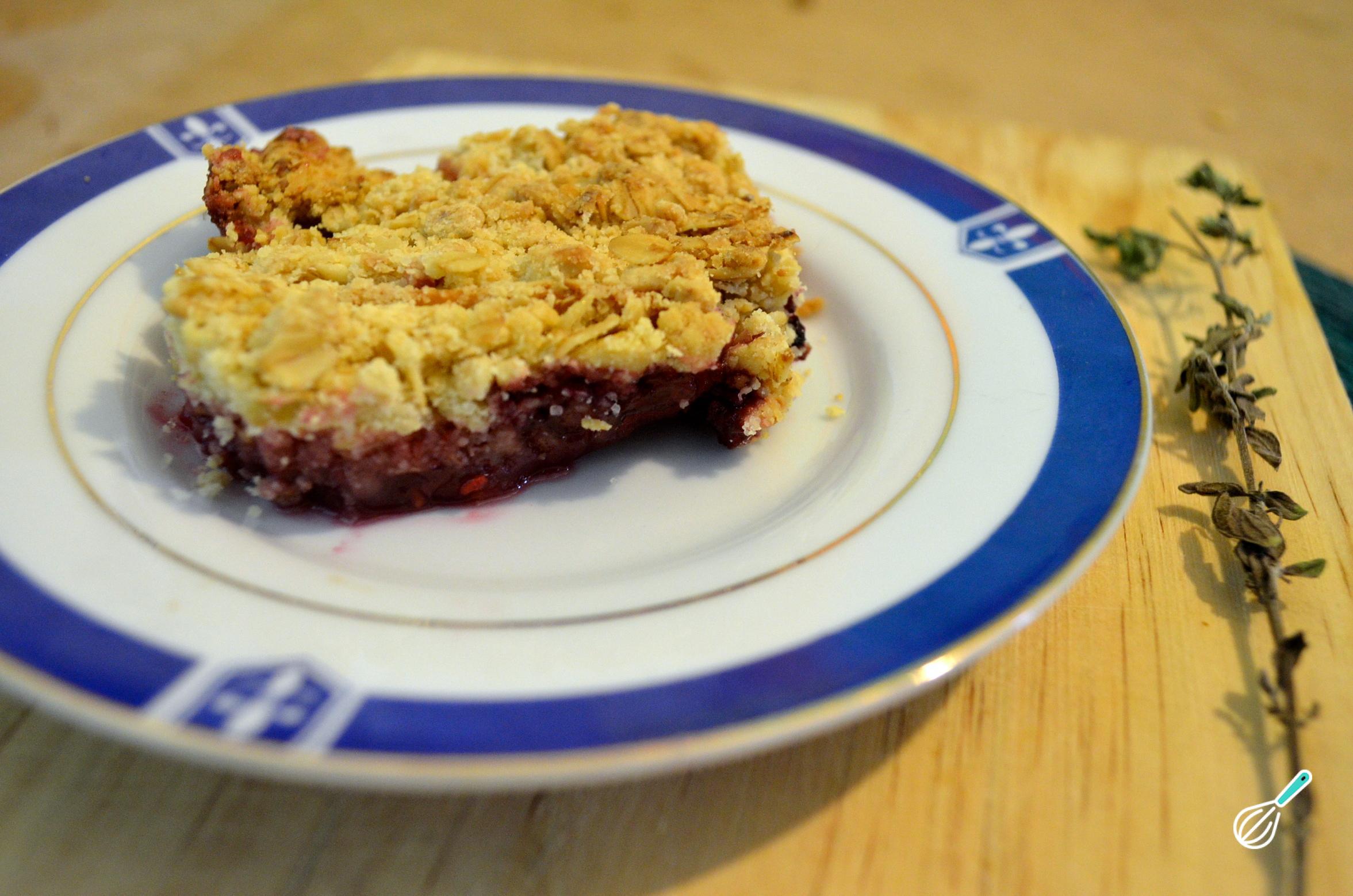 Para a cobertura: coloque a farinha, a aveia e o açúcar em uma tigela para mistura e incorpore a manteiga com as mãos até que a mistura ganhe uma consistência estilo farofa.