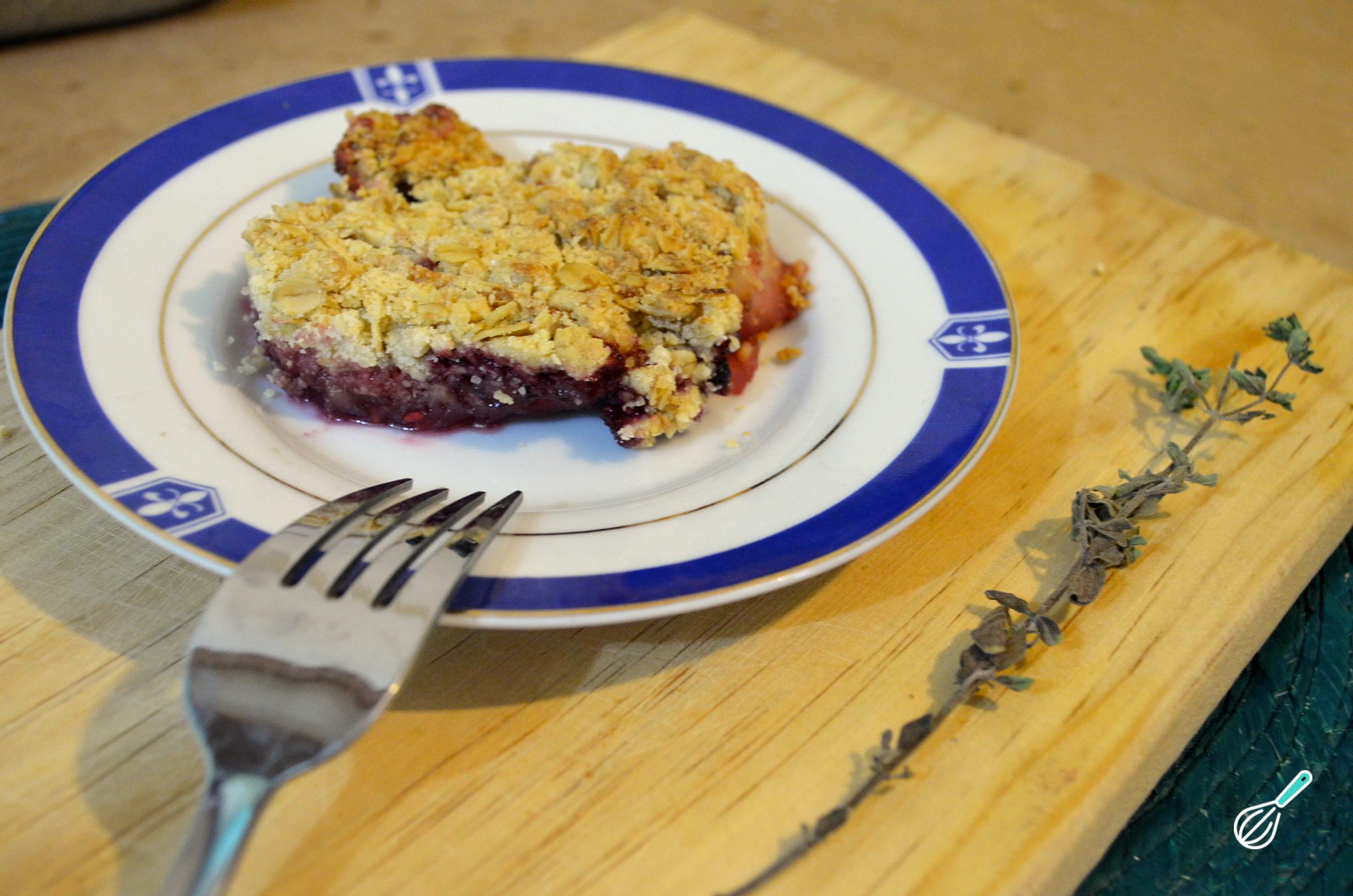 Asse o molde no forno pré-aquecido a 200 ° C, de 20 a 30 minutos, ou até que a cobertura crocante esteja leve e dourada. Sirva o crumble de maçã e amora quente com creme ácido, creme chantilly ou com sorvete de baunilha.