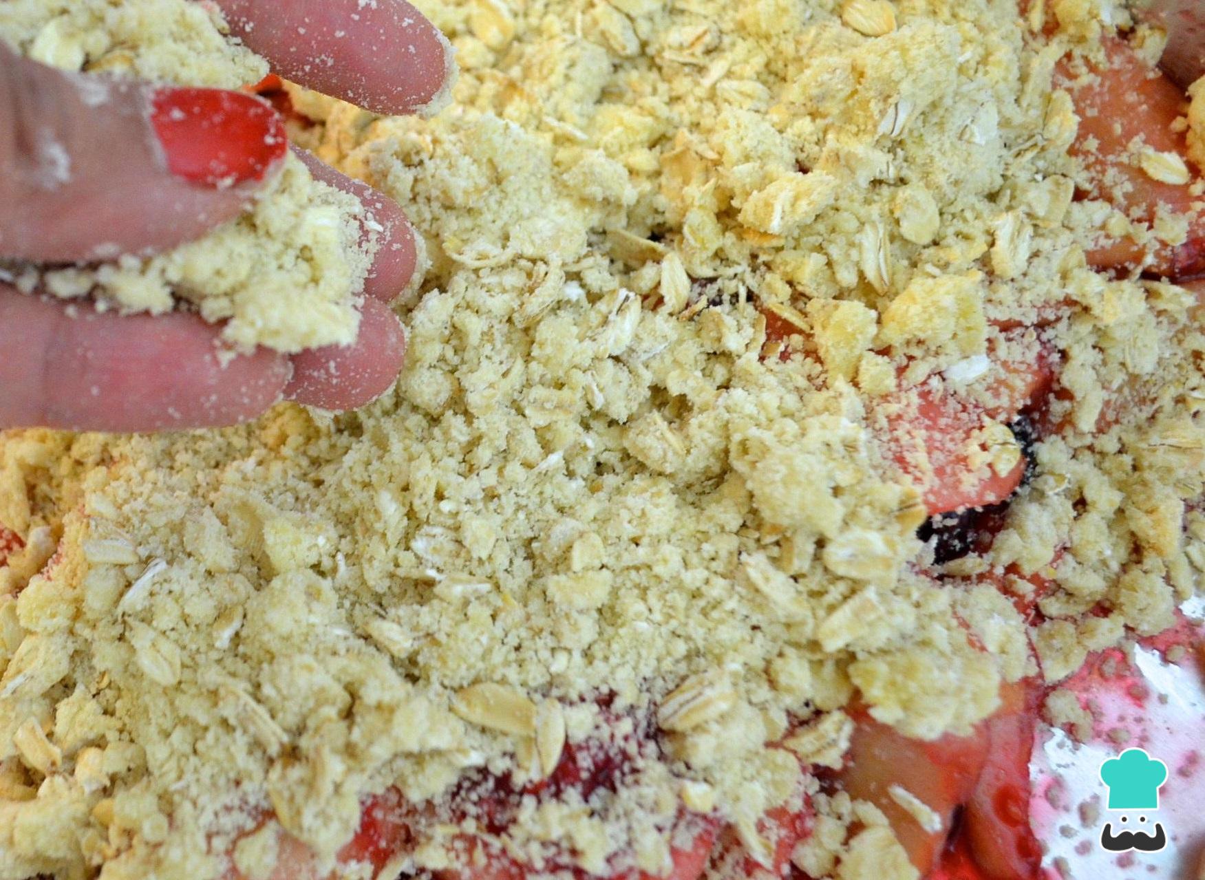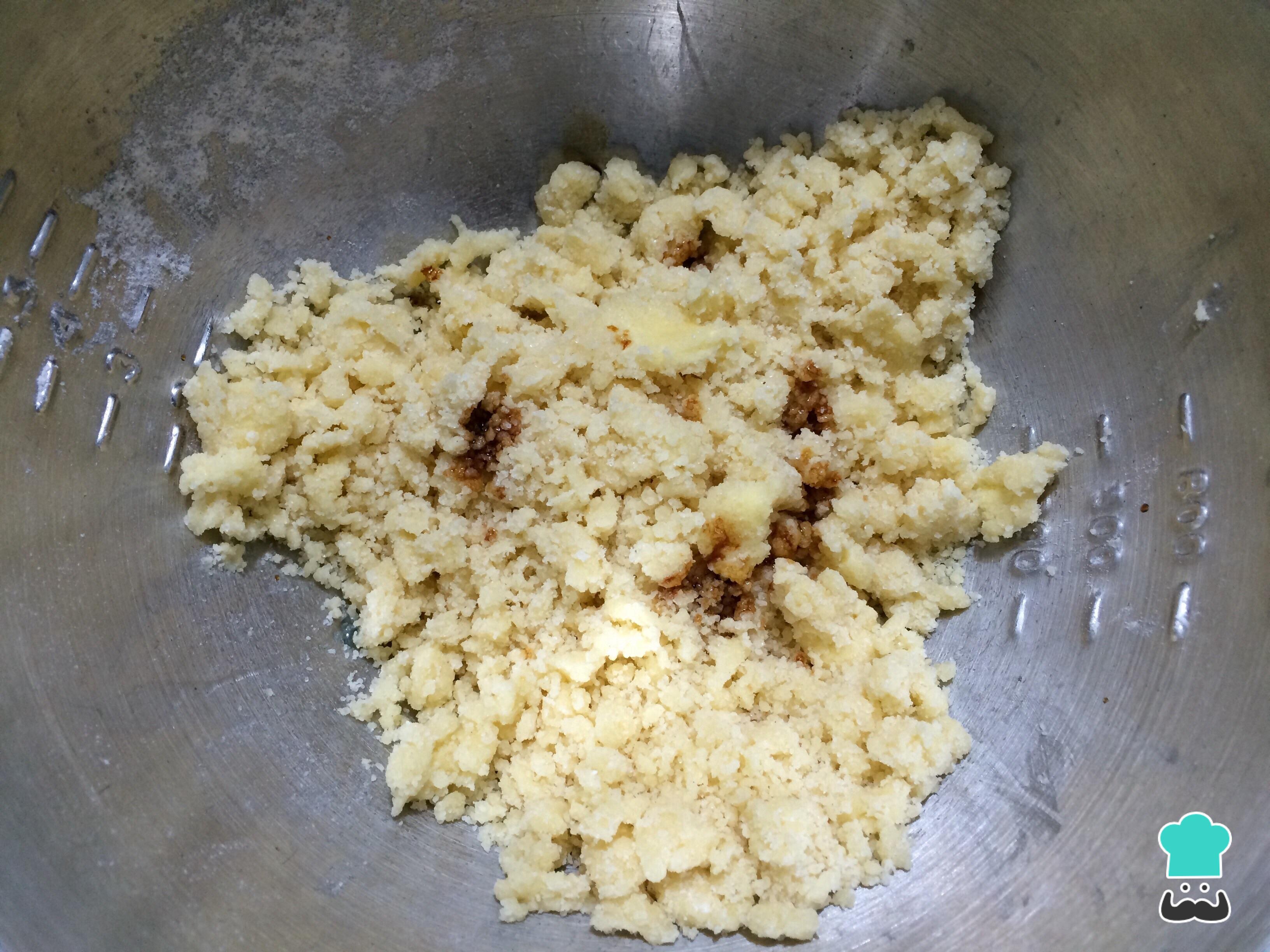 Dica: O segredo do crumble é adicionar a manteiga bem fria, saída de geladeira, cortada em pedacinhos bem pequenos.