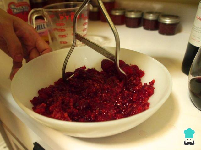 Cubra as frutas com um fio de suco de limão e reserve. Coloque as framboesas em uma tigela separada e amasse até obter uma textura de purê.