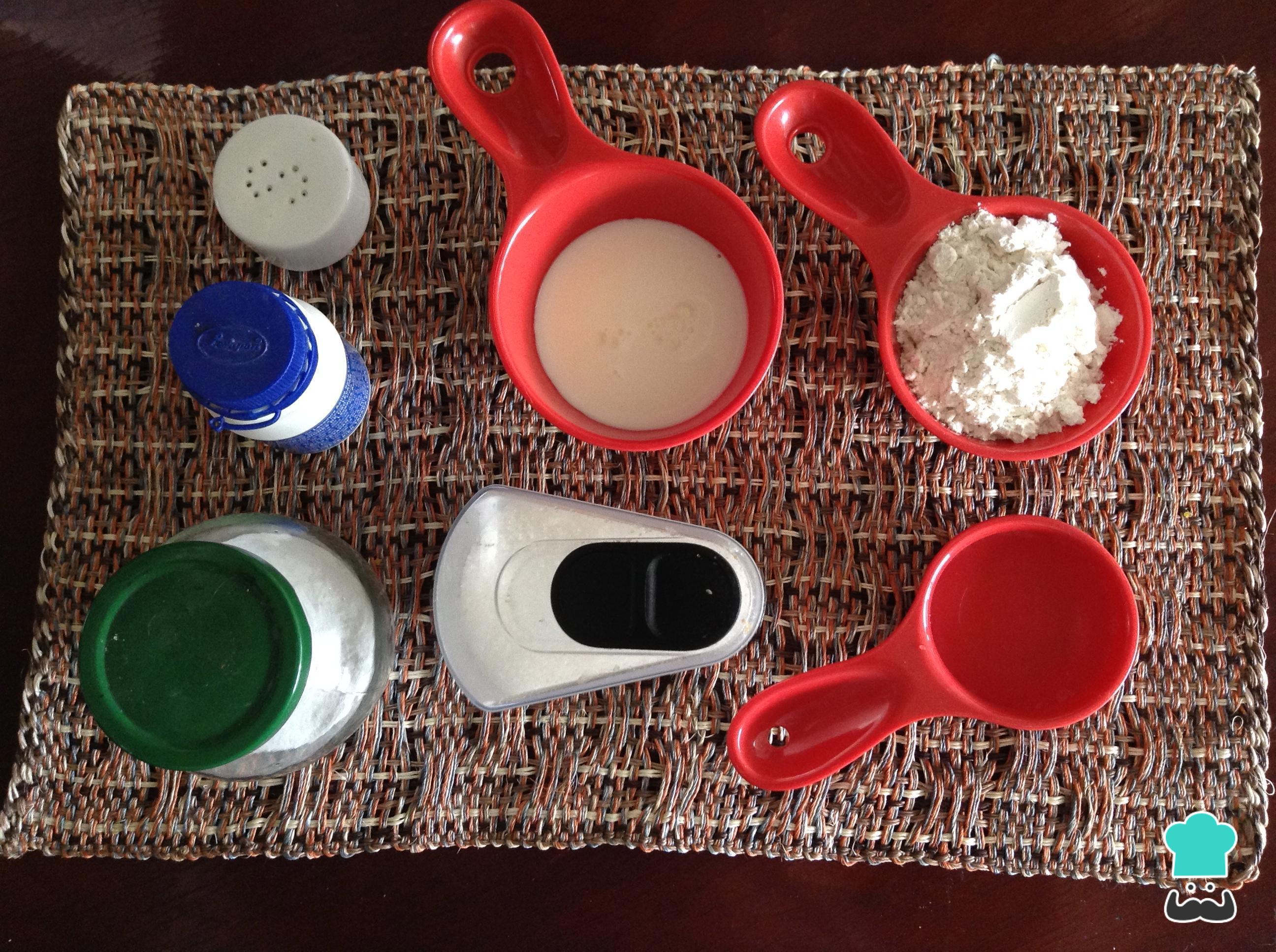 Coloque a farinha em uma tigela e adicione-lhe o bicarbonato de sódio, o sal, e o açúcar, misture. Acrescente o leite e volte a misturar, desta vez com uma batedeira ou no liquidificador, até obter uma massa sem grumos.