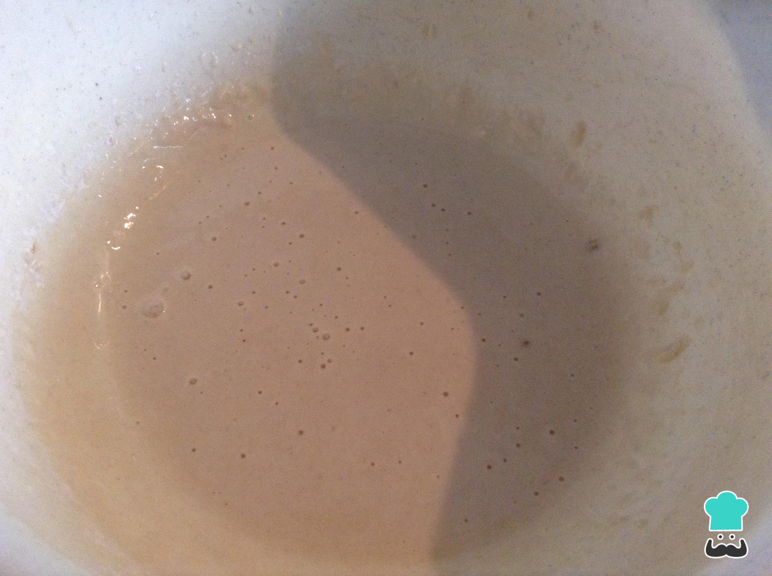 Adicione o fermento e misture novamente. Deixe a mistura dos crumpets ingleses repousar por 30 minutos.