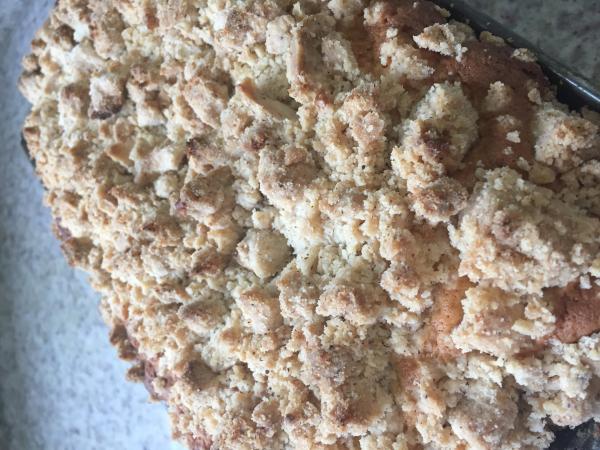 Isso não é cuca alemã, isso é uma massa de bolo com farofa. kkkk