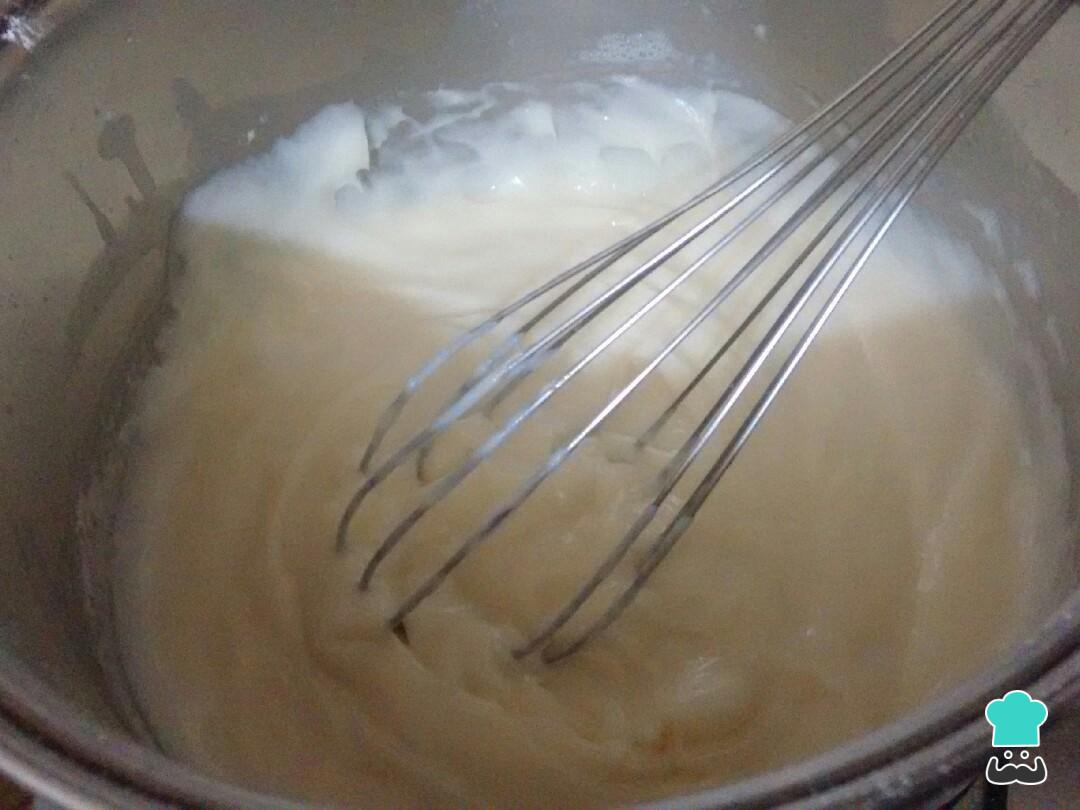 Primeiro vamos preparar o creme para o recheio: em uma panela dissolva o amido no leite, depois junte o leite condensado, o creme de leite e a essência de baunilha. Leve ao fogo e mexa até engrossar, desligue o fogo e deixe esfriar.
