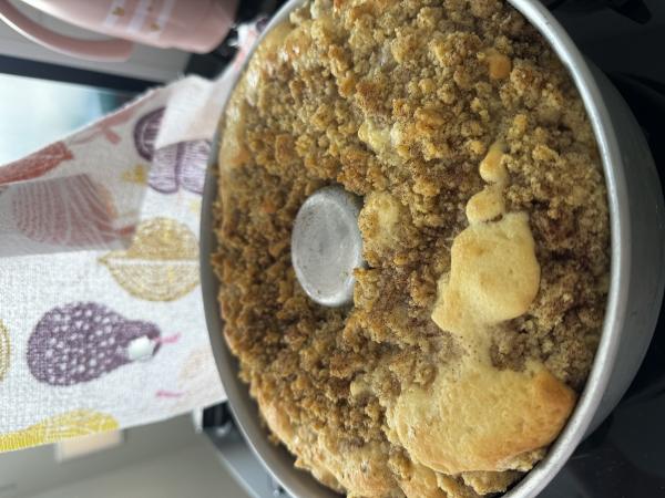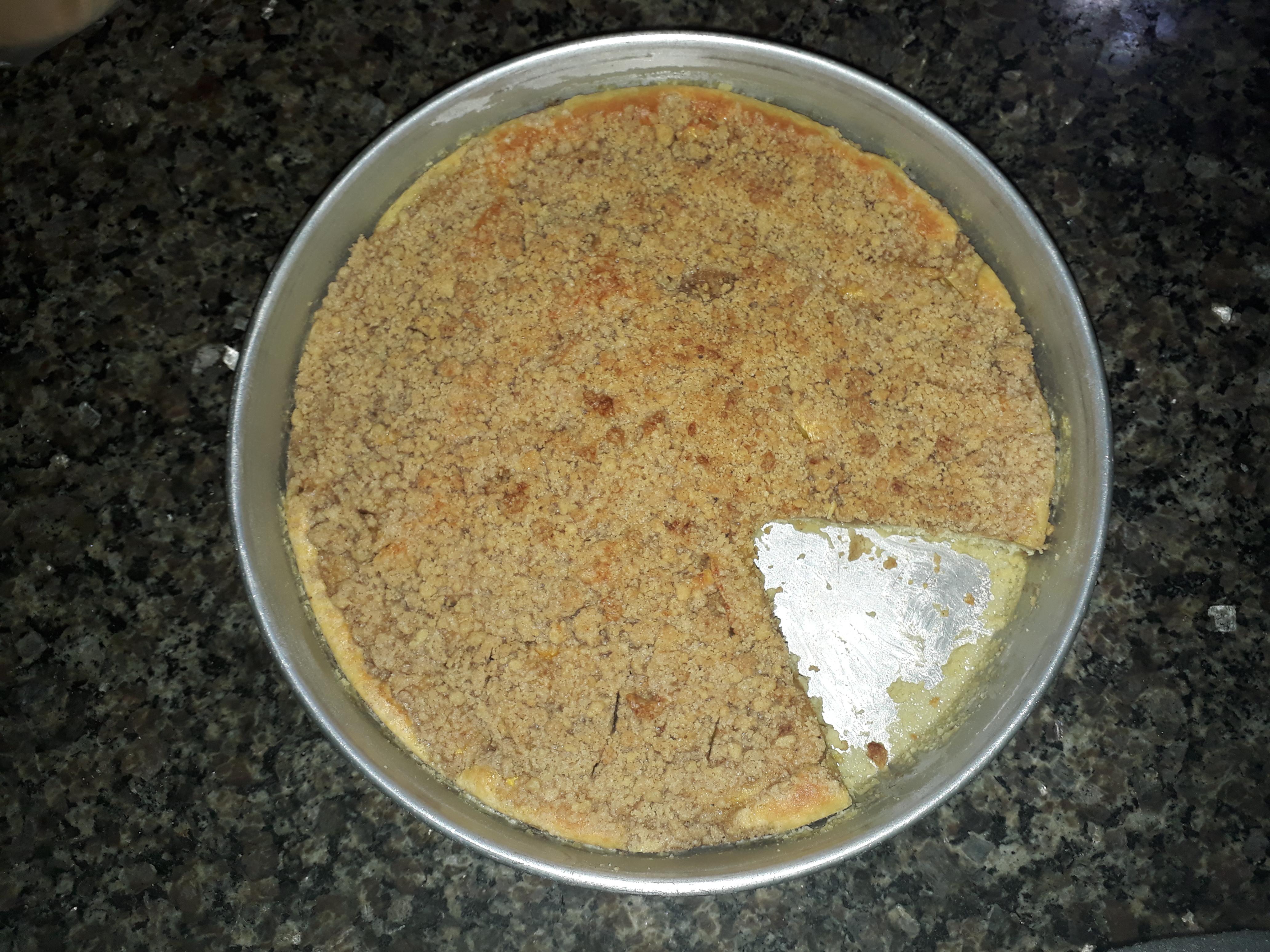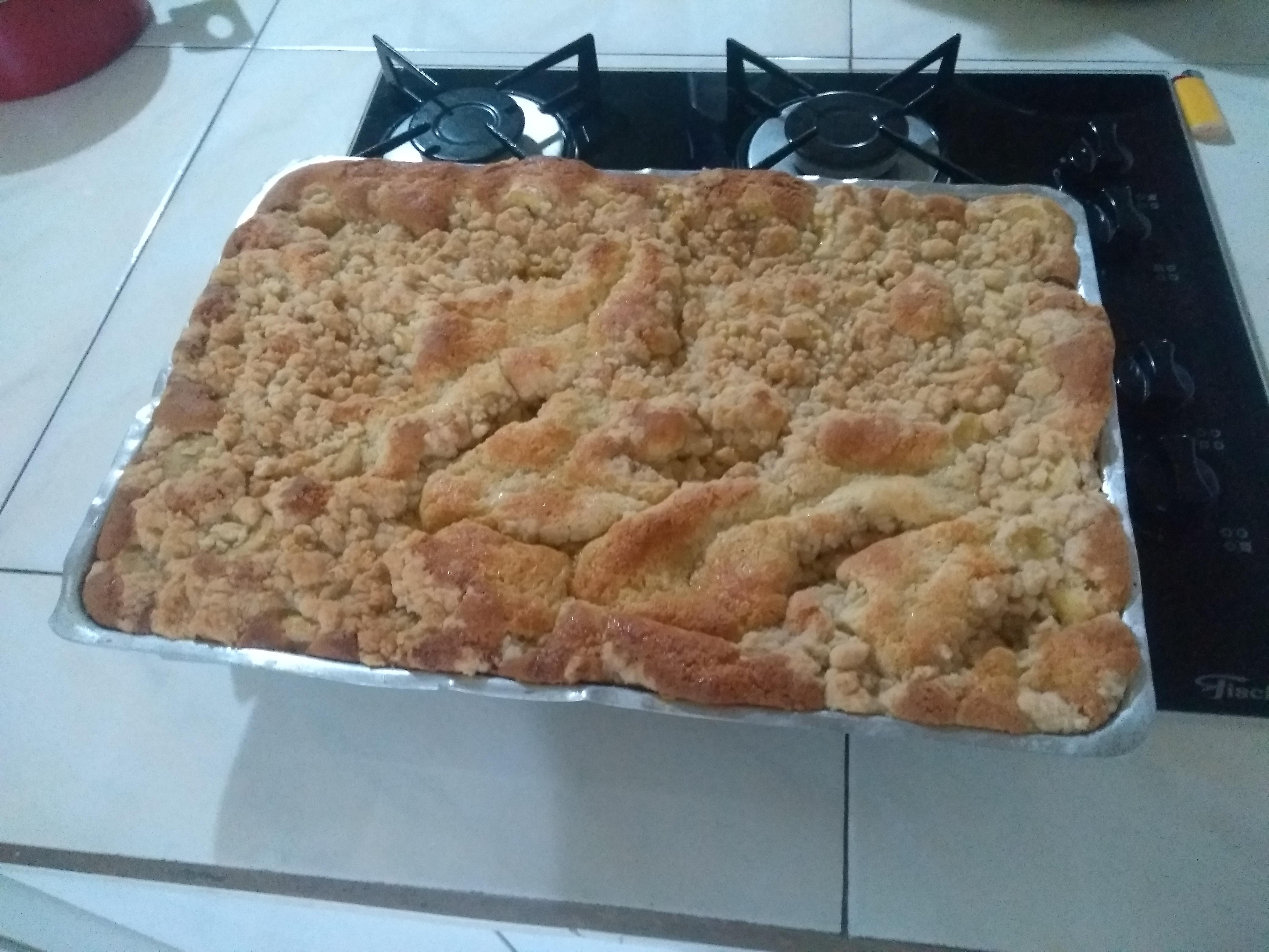 Oi, acabei de fazer o minha cuca, segui o passo a passo certinho. A aparência tá boa, vou experimentar, mas parece que ficou top.