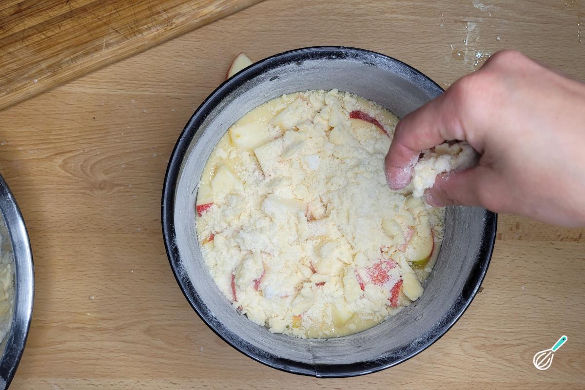 A cuca pode ser feita com várias frutas diferentes. Aqui, ela ganha o sabor especial da maçã, que combina muito com essa farofinha crocante. Um bolo super fácil de fazer e que é perfeito para um cafezinho da tarde.