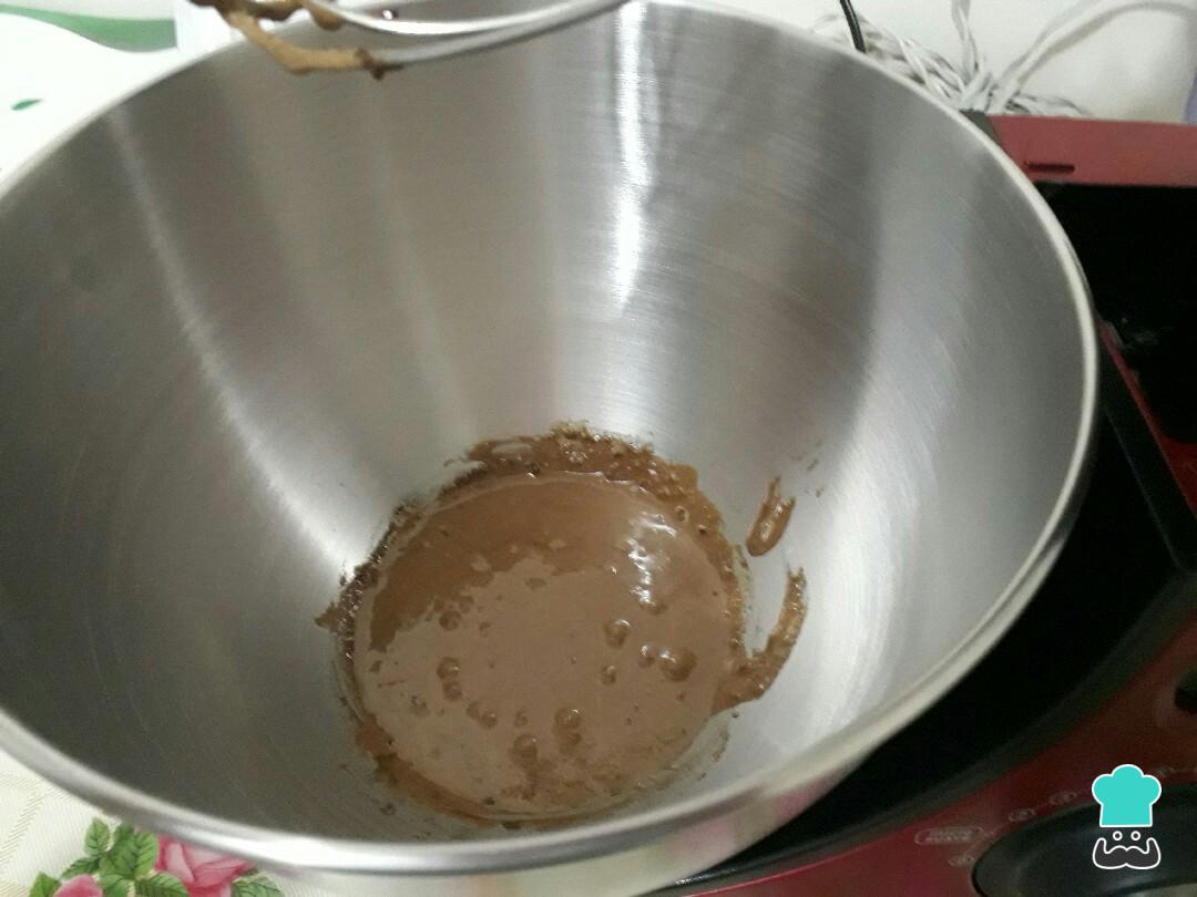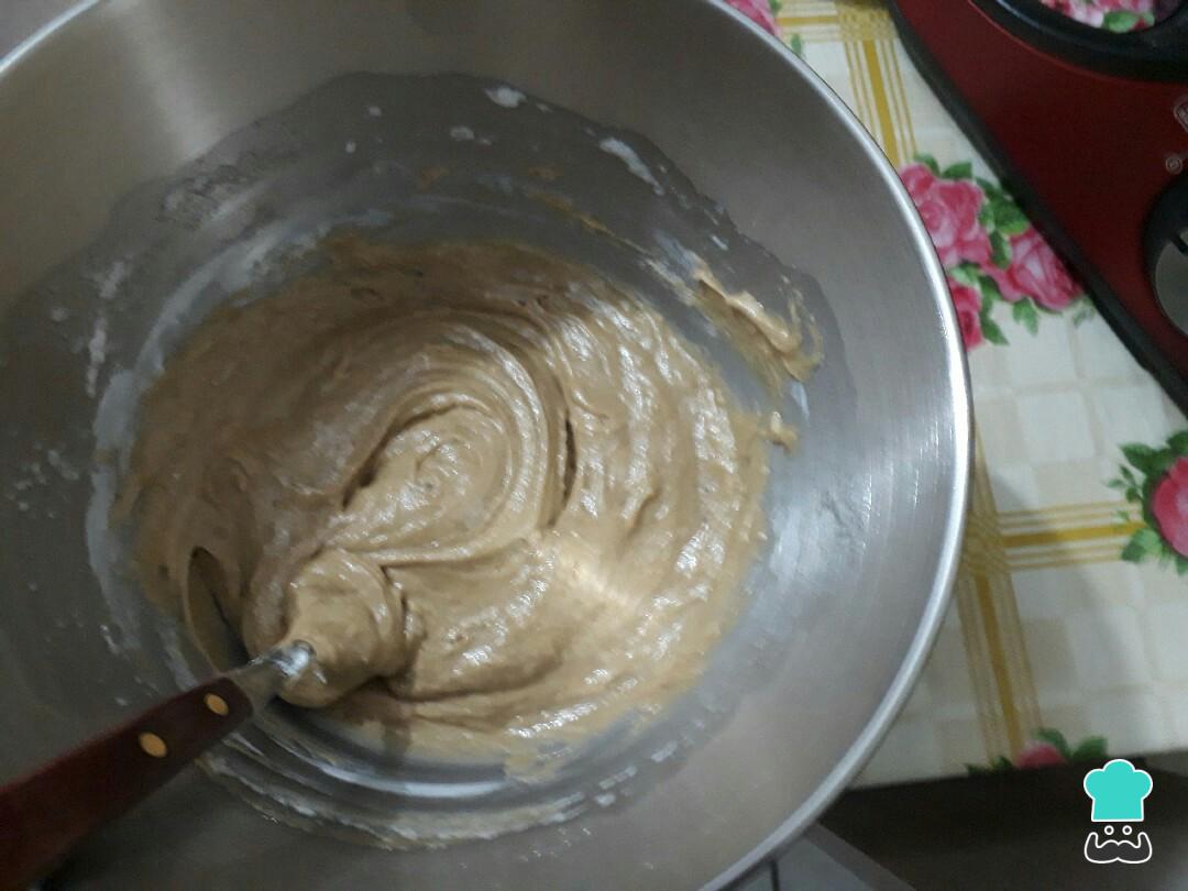 Depois, bata as gemas com o açúcar até virar um creme, como na fotografia. Acrescente o leite sem lactose ou o leite de coco, e mais a manteiga ou o óleo (dependendo do que você escolher) e continue batendo.