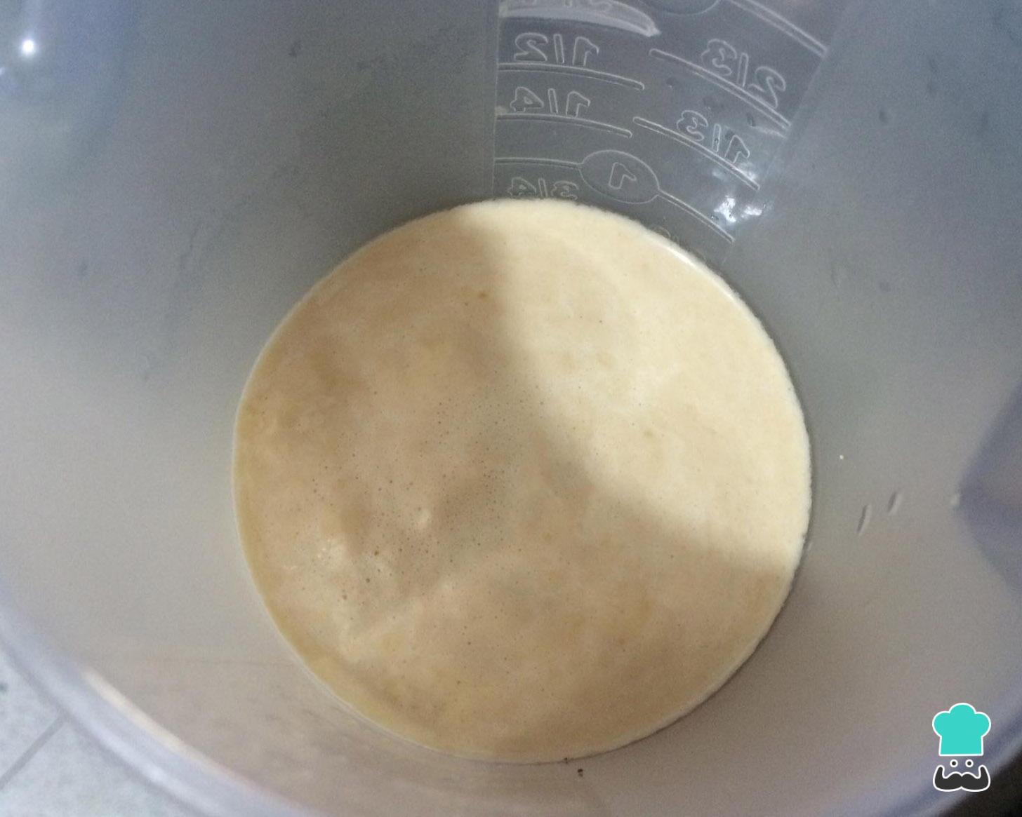 Prepare esta receita de cueca virada dissolvendo o fermento no leite morno.