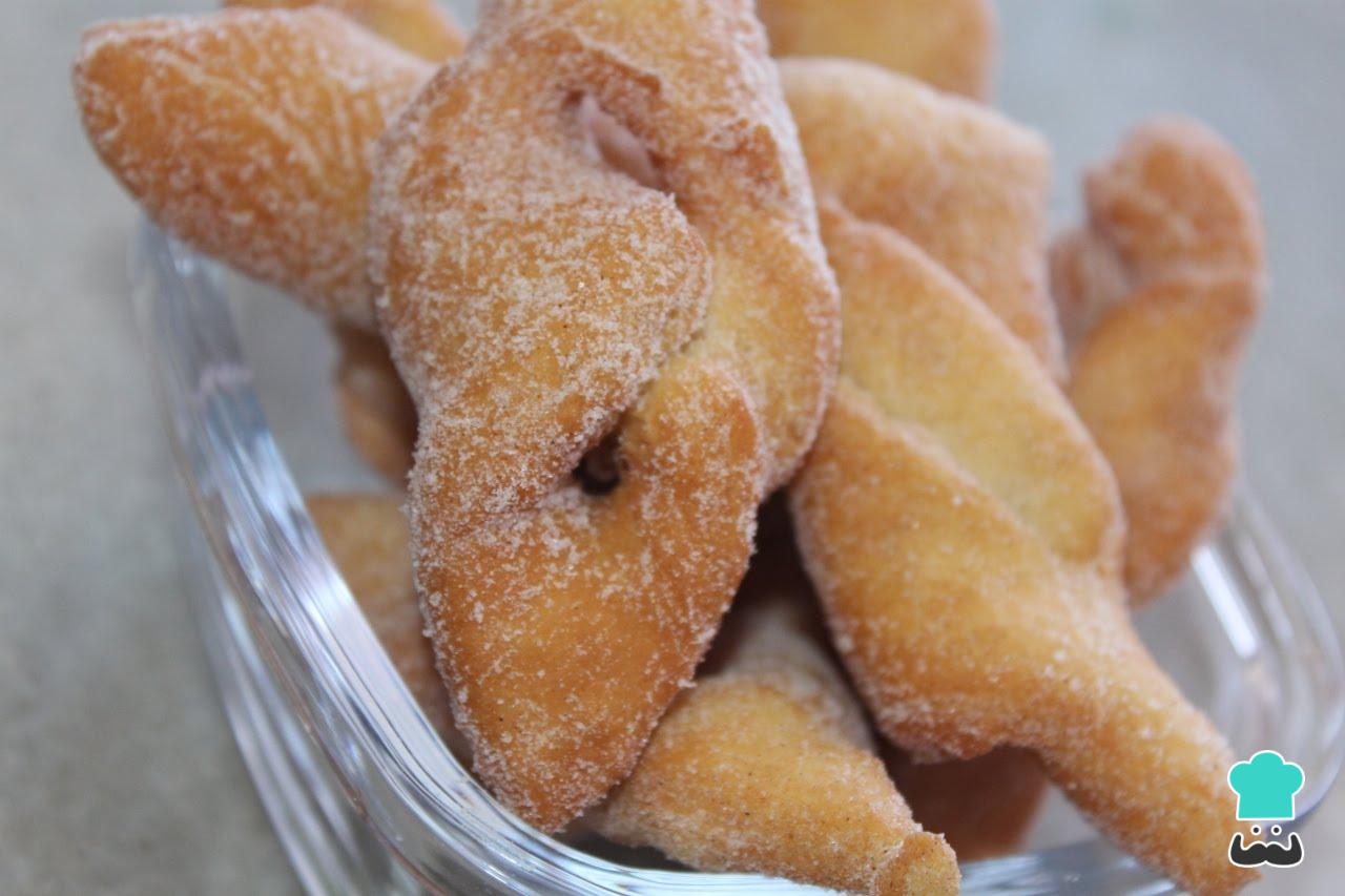 Por fim frite a cueca virada em óleo quente até ficar dourada. Retire para um prato com papel absorvente, para eliminar o excesso de óleo e, quando ainda está quente, envolva passe cada biscoito em um prato com açúcar e canela misturados.