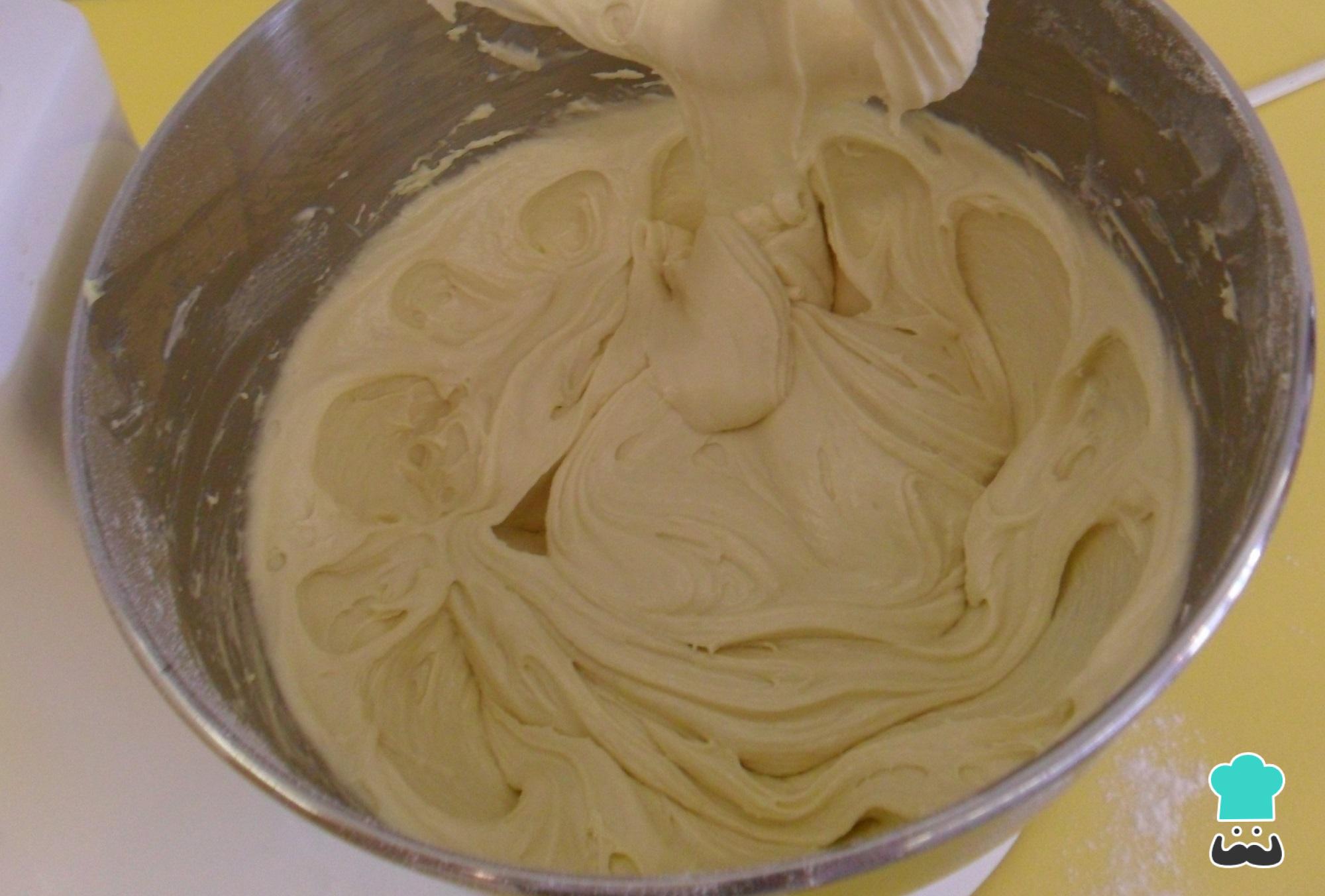Adicione os ovos um a um à mistura anterior, enquanto mexe, esperando que estejam bem incorporados para acrescentar o próximo. Misture também a essência de baunilha.