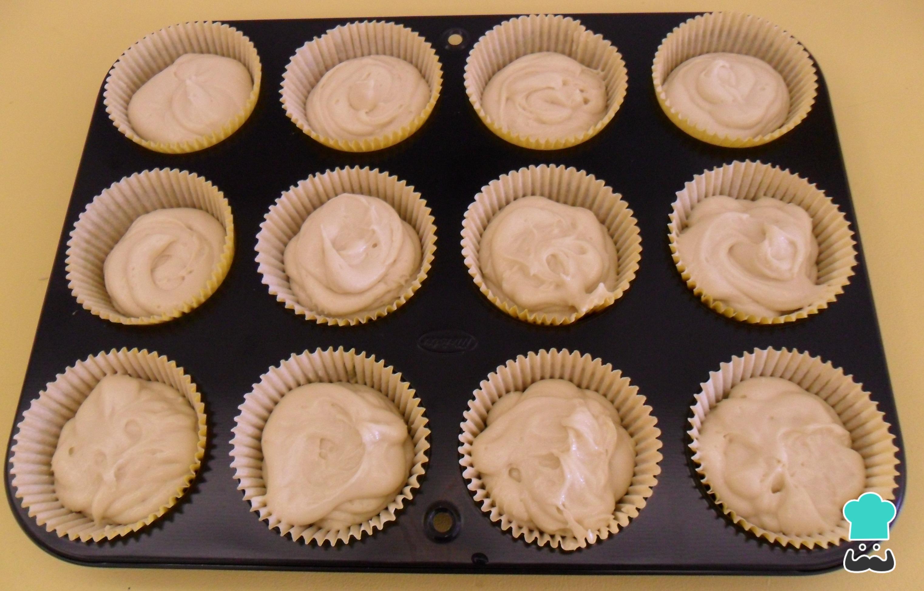 Finalmente misture na massa o fermento e a pitada de sal. Distribua por forminhas de cupcake, sem encher até ao topo, e leve a assar no forno preaquecido a 180ºC por 15-20 minutos.