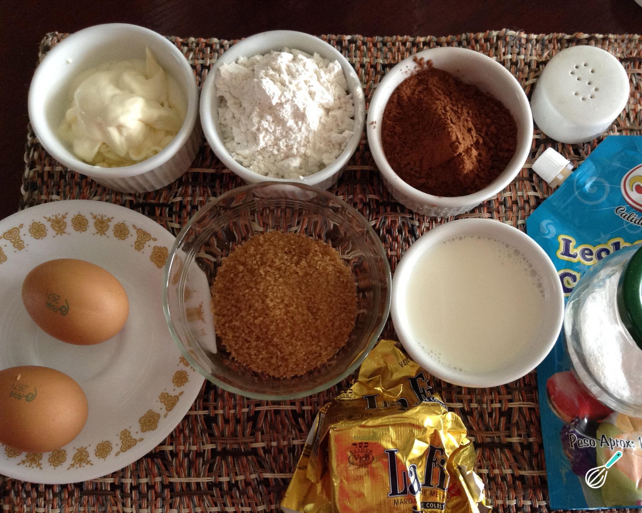 Reúna os ingredientes desta receita de massa para cupcake de chocolate, devidamente medidos e separados para agilizar o procedimento.
