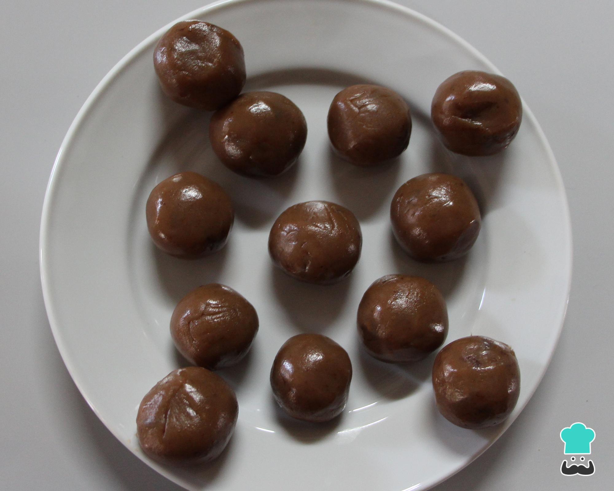 Deixe esfriar um pouco, depois enrole, pelo menos, 8 brigadeiros de tamanho um pouco menor que o brigadeiro comum. Reserve na geladeira.