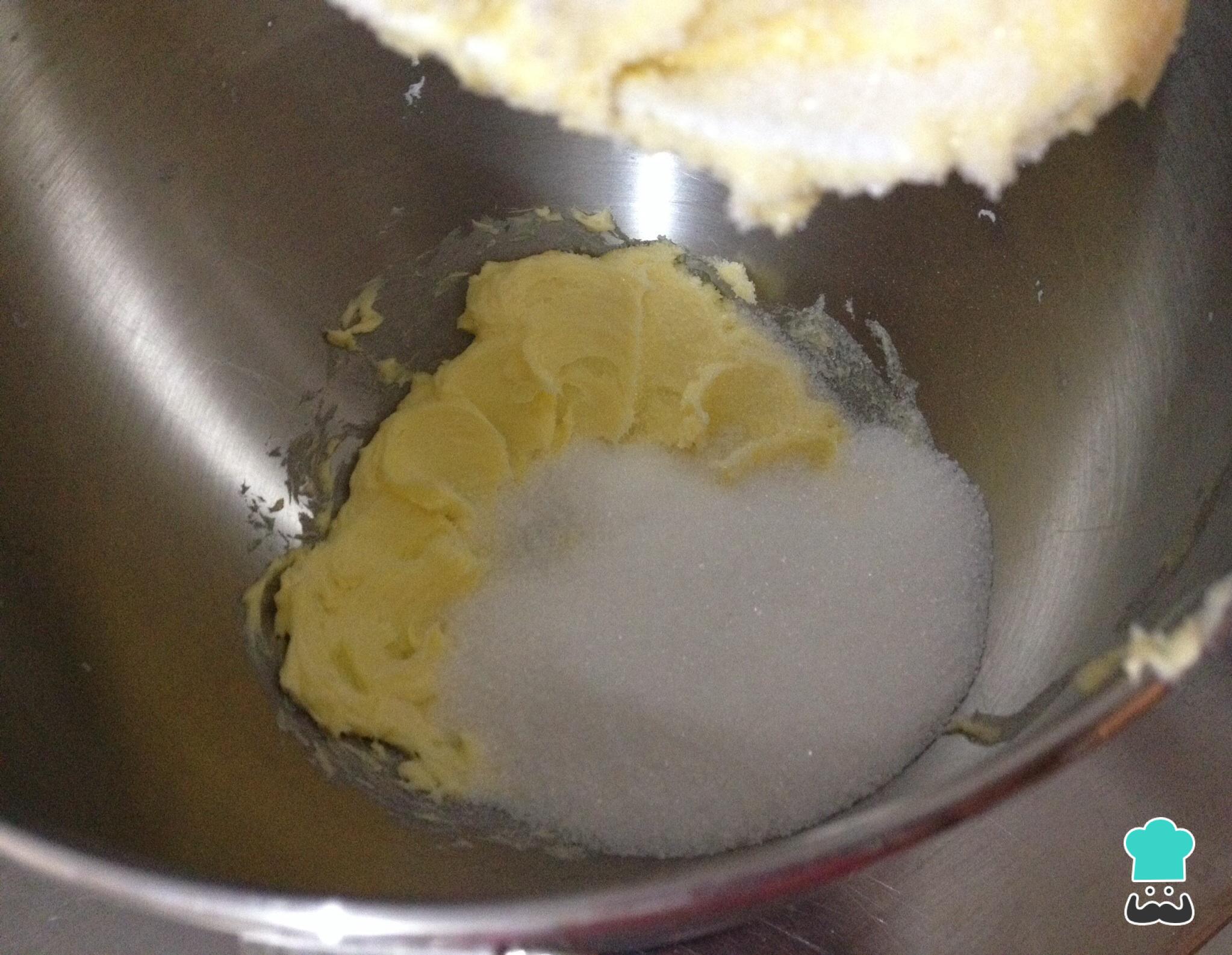 Misture a manteiga com o açúcar e a essência de baunilha.