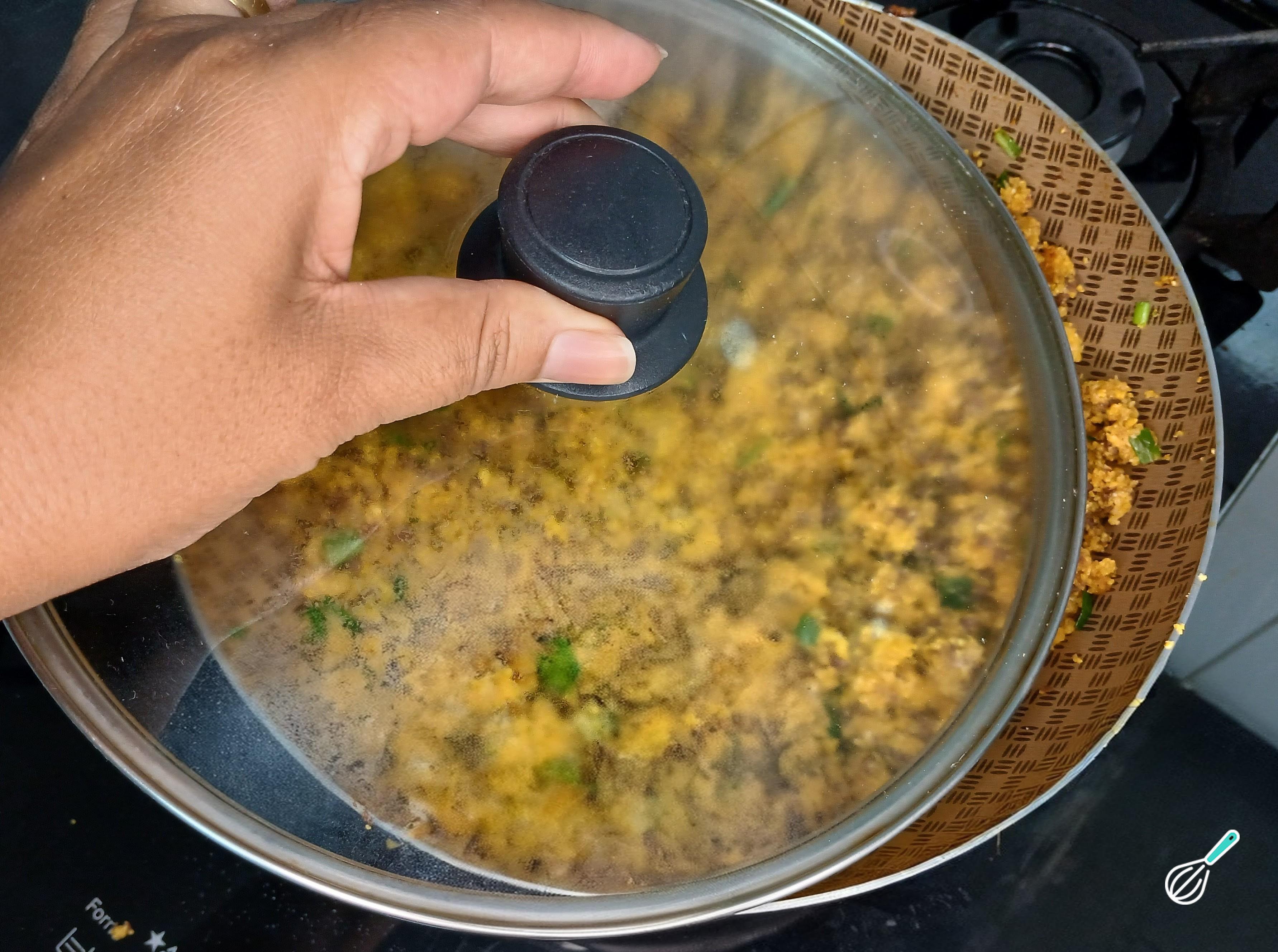 Dica: Mantenha o fogo bem baixo para evitar que o cuscuz queime. E mexa para cozinhar por igual
