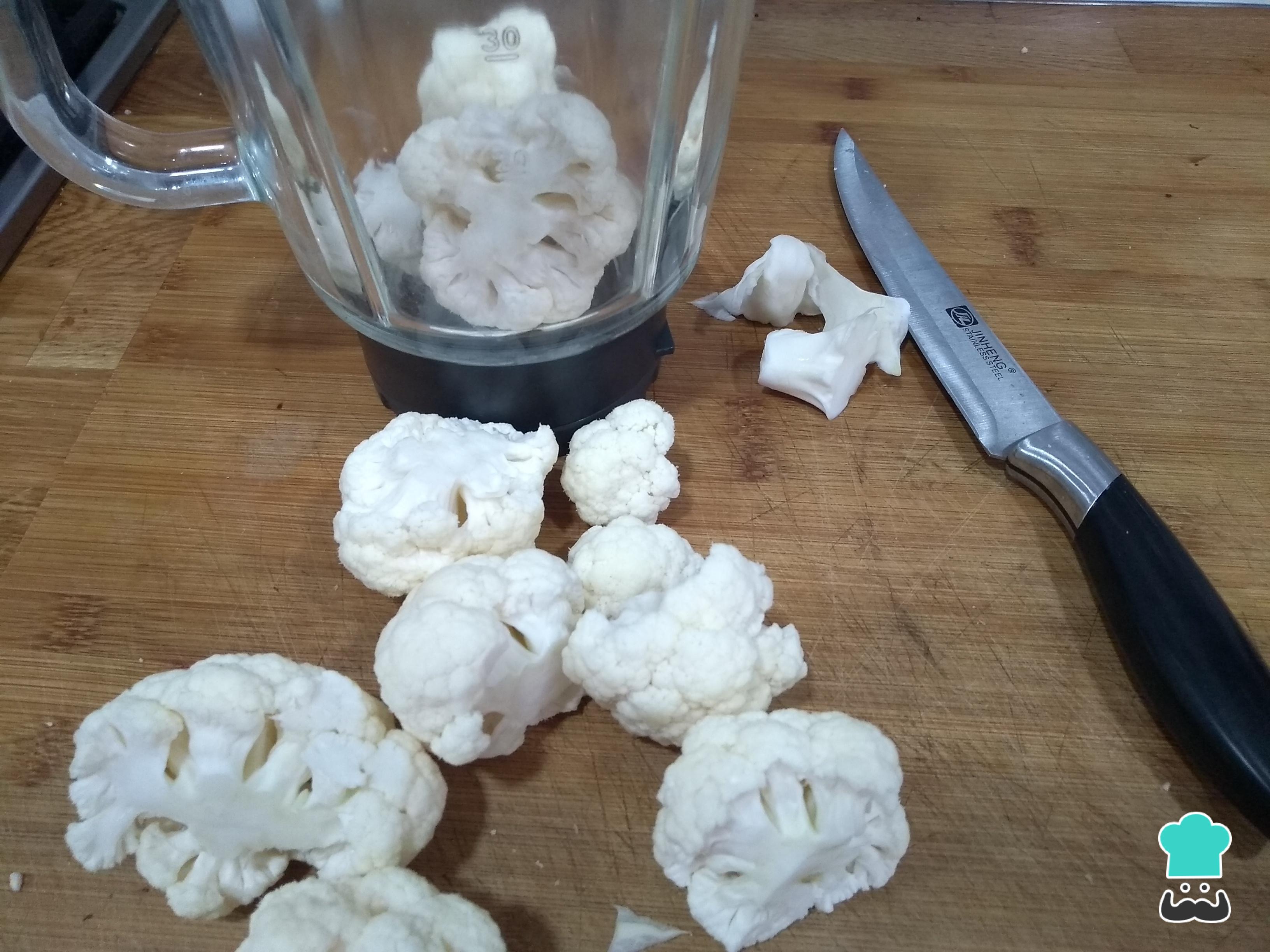 Para preparar esta receita com couve-flor você só precisa da parte superior do legume, ou seja, os floretes. Comece por separar cuidadosamente cada um desses pedaços e retirar o caule que os une. Desta forma, será mais fácil processar a couve flor até ficar com textura semelhante a cuscuz. Processe os floretes de couve flor no liquidificador, processador ou pique finamente com uma faca.