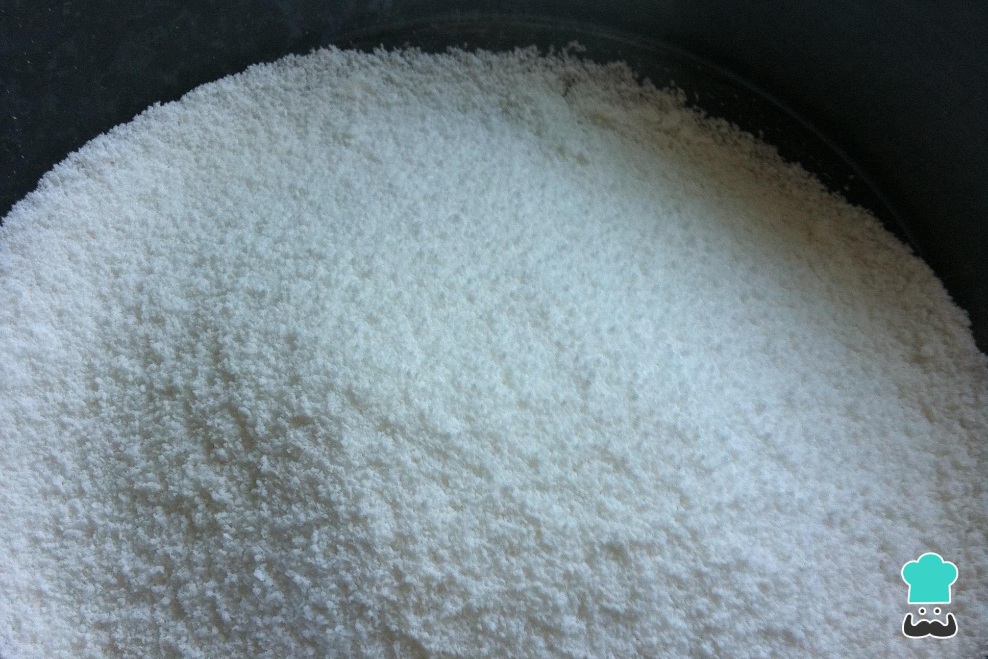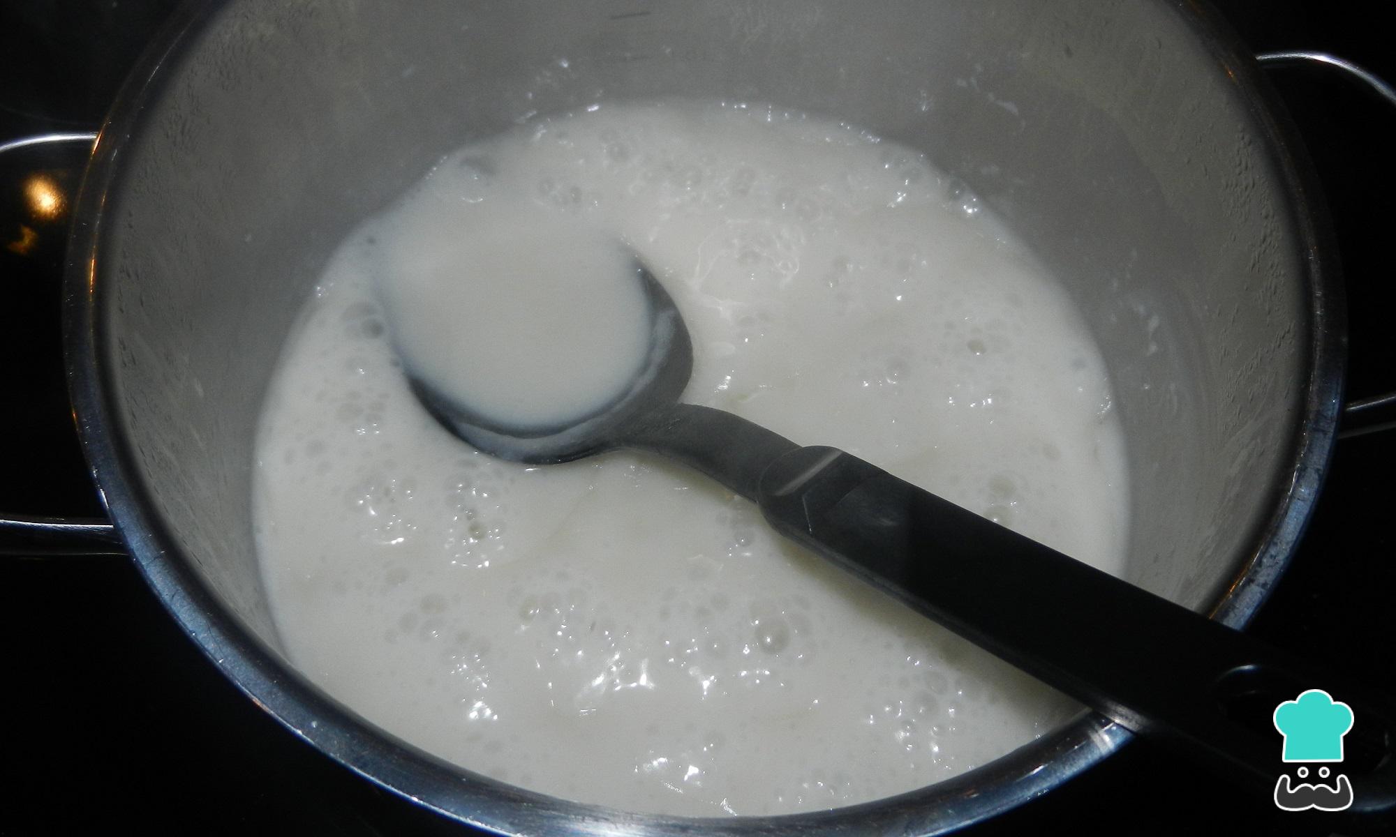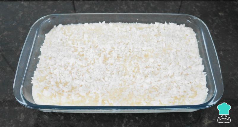 Misture o leite de coco, o açúcar e o coco ralado no leite já fervido e ainda quente.
