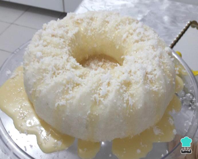 Bate no liquidificador o leite, o açúcar, o coco e o sal.