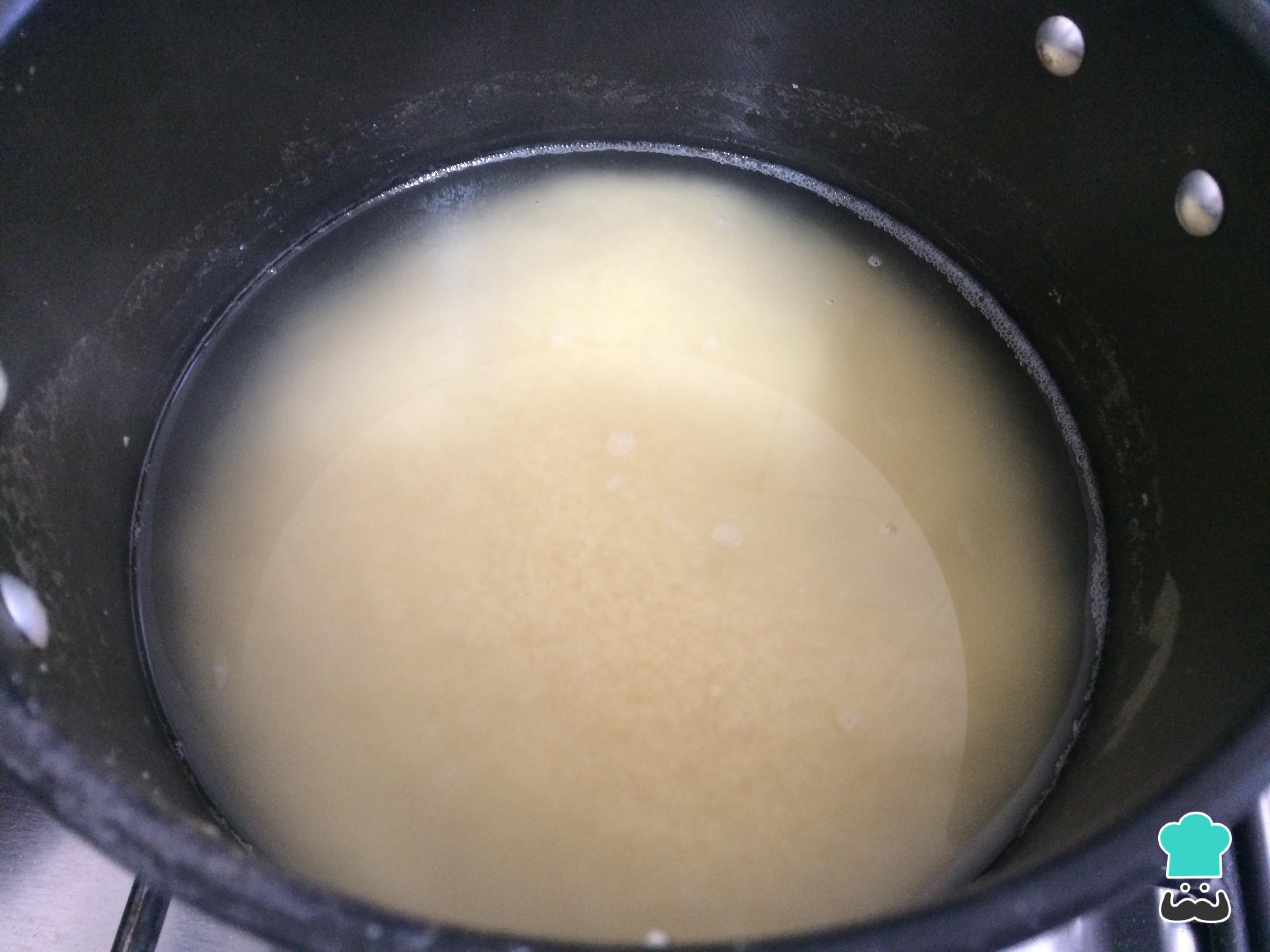 Para cozinhar o cuscuz, leve uma panela com água ao fogo médio-alto. Quando fervendo, desligue, acrescente o cuscuz e deixe repousar por 2 minutos. Depois escorra o excesso de água e reserve.