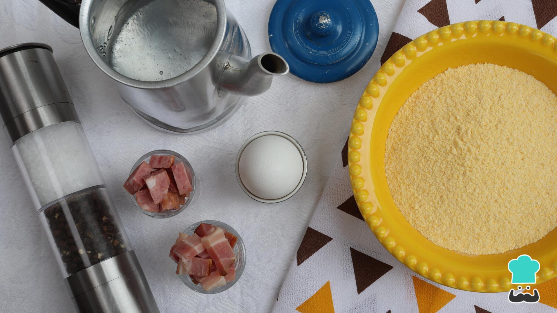Separe os ingredientes. Se desejar, acrescente mais bacon/ovo ou linguiça - a quantidade aqui é a gosto.
