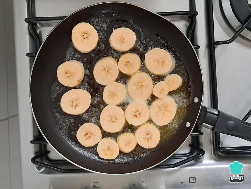 Aqueça uma frigideira média com manteiga e refogue as rodelas de banana da terra até ficarem douradas dos dois lados.