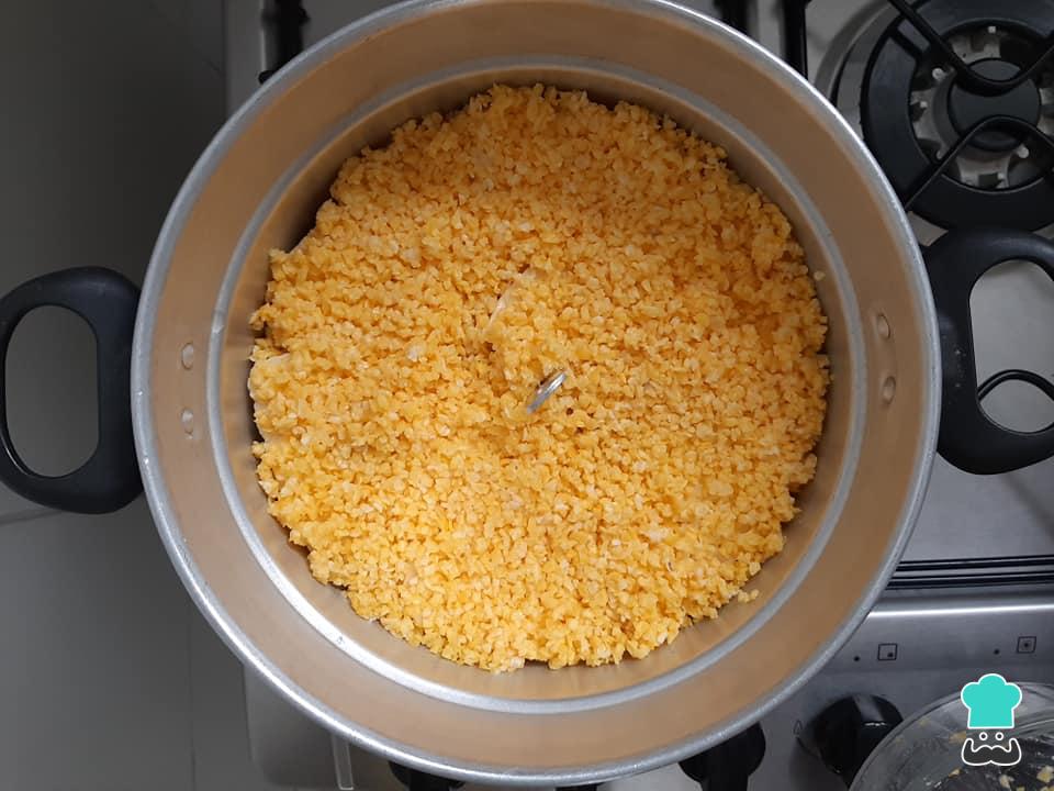 Deixe o cuscuz cozinhar por 15 a 20 minutos a partir do momento que o vapor começar a sair pela panela.