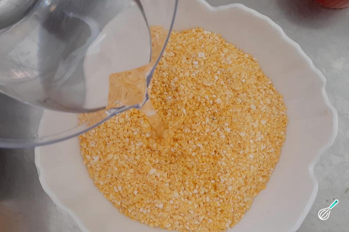 Hidrate o flocão de milho com 1 xícara e meia de água filtrada e, em seguida, adicione o sal.