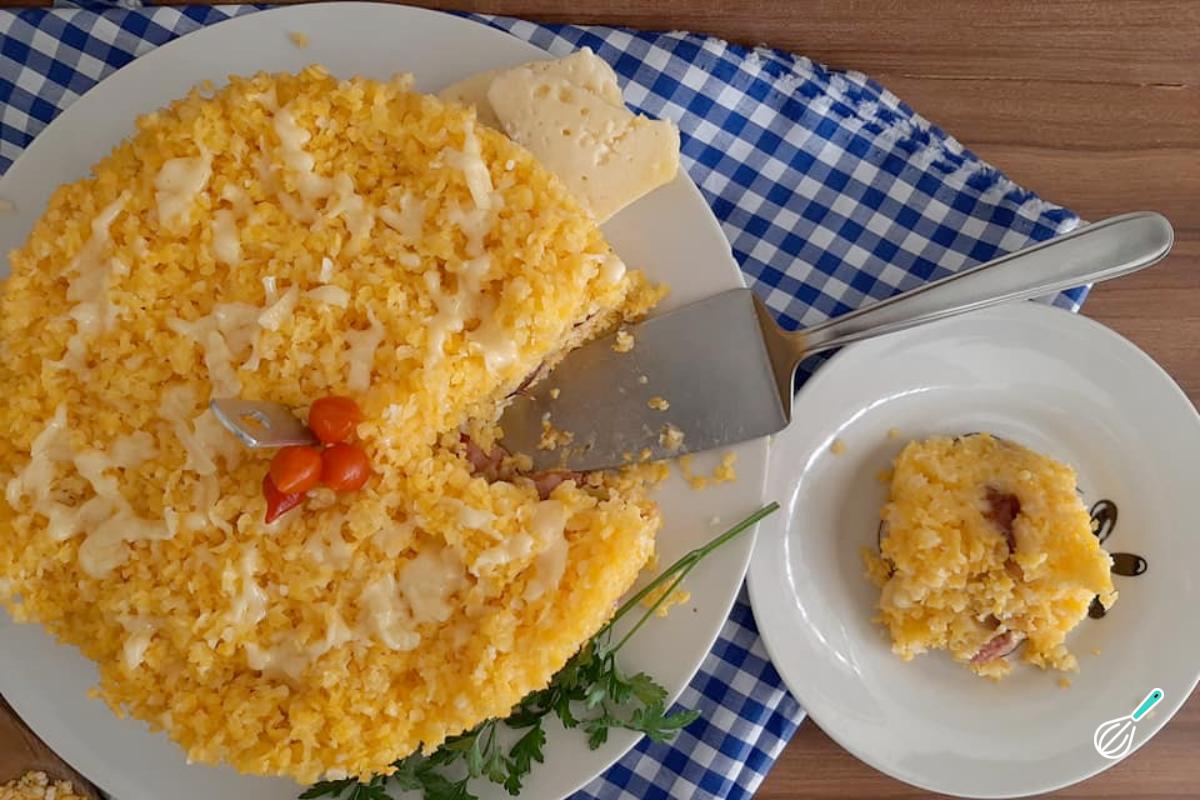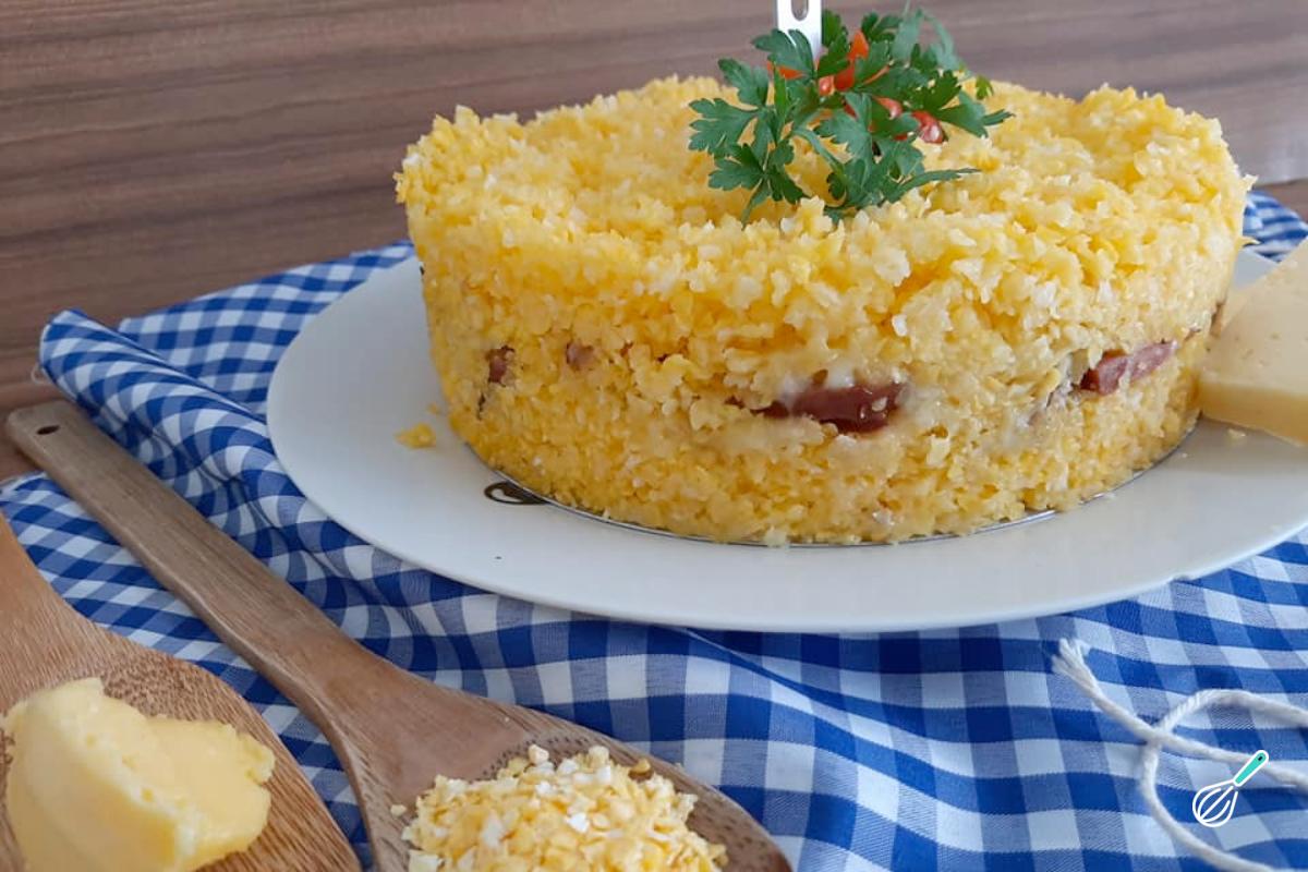 Seu cuscuz recheado com calabresa e queijo está pronto para ser servido e fará muito sucessos nos festejos juninos e não só! Esperamos que tenha apreciado a receita e bom apetite!
