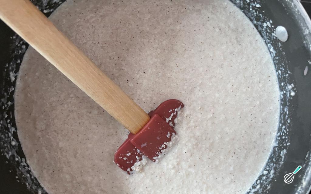 Despeje a mistura de tapioca no leite. Mexa até todo líquido ser absorvido.