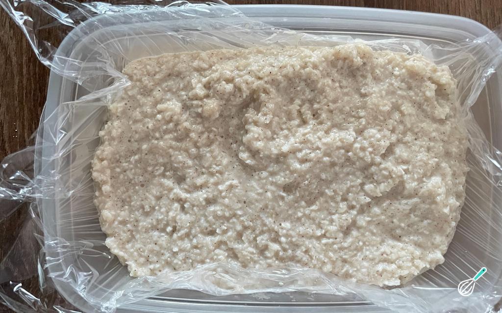 Forre uma tigela com plástico-filme, despeje a mistura e cubra bem. Leve para a geladeira por pelo menos 2 horas.