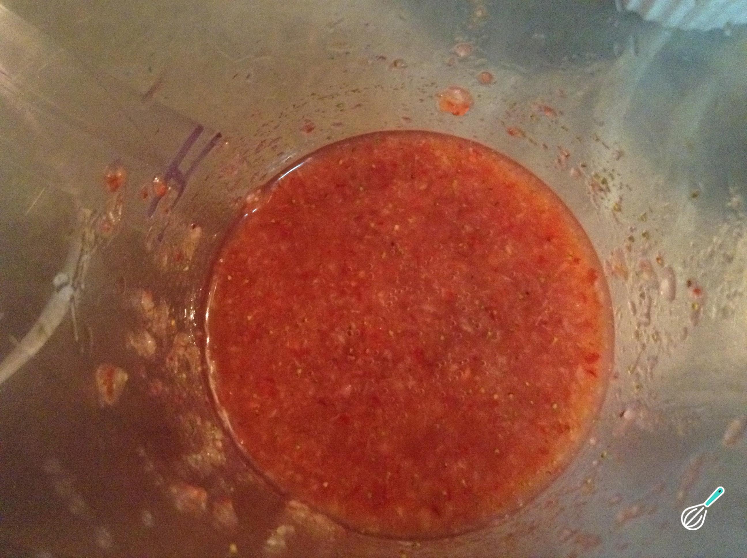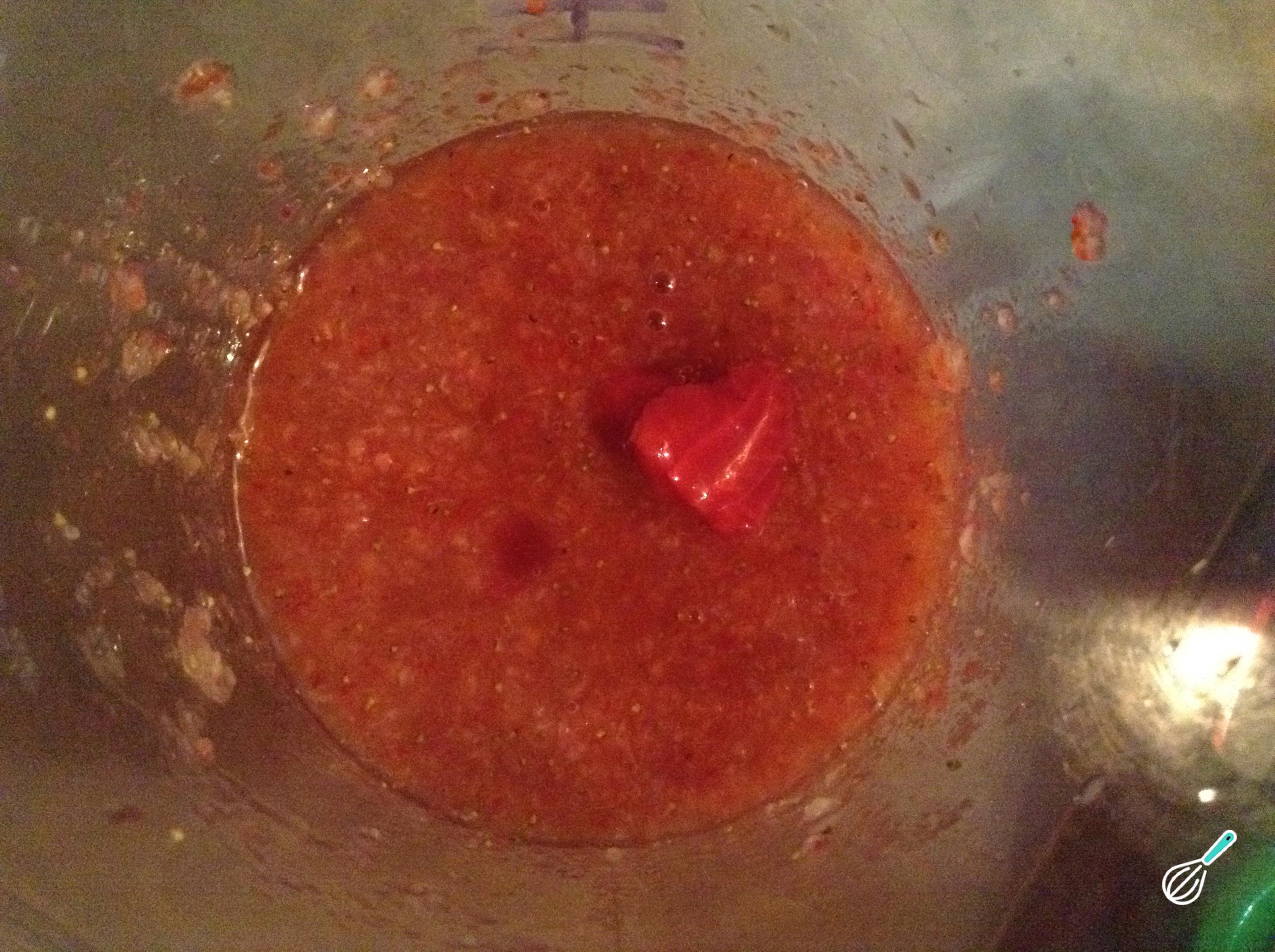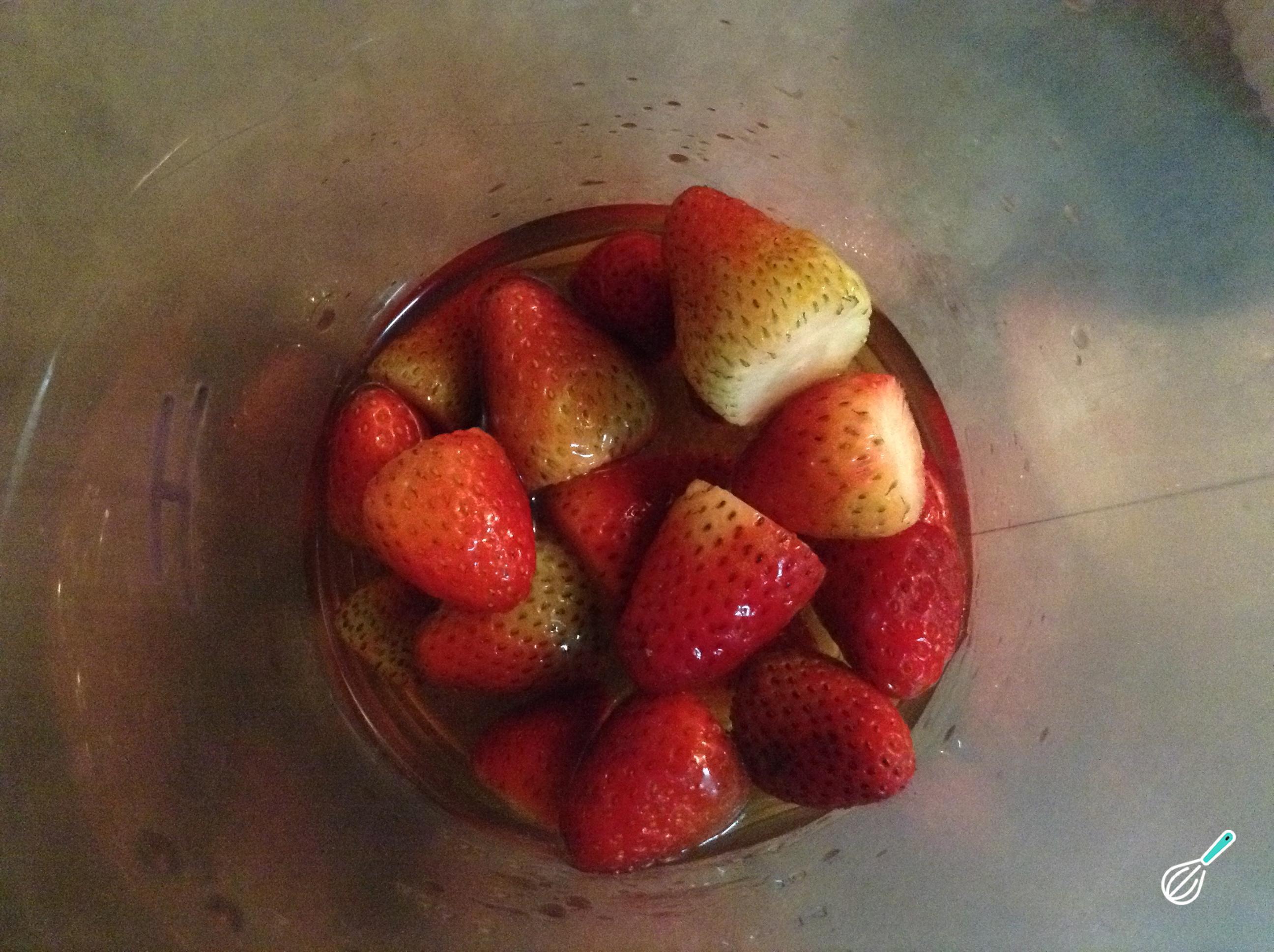Retire o talo dos morangos e lave-os. Coloque os morangos com o rum no liquidificador e bata muito bem.