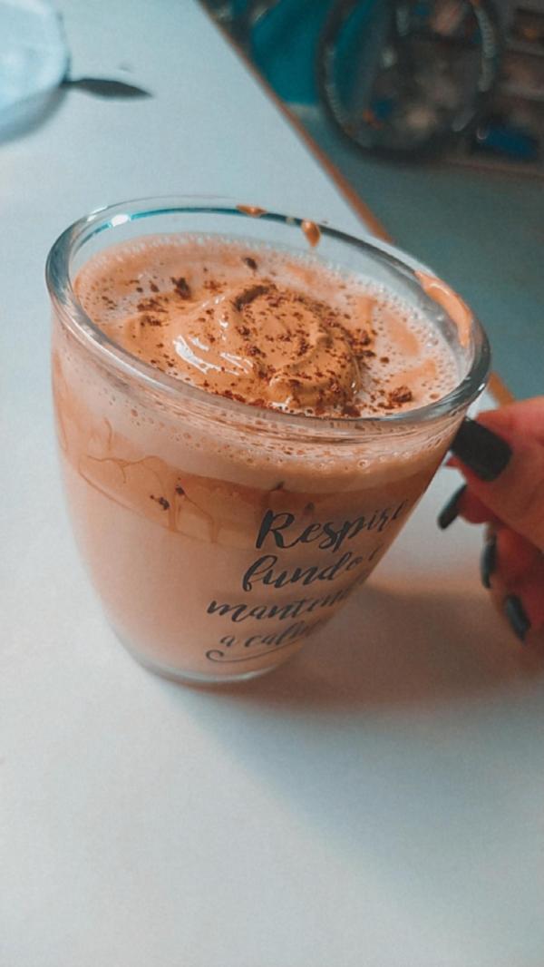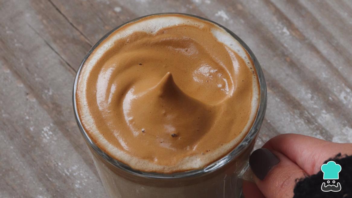 Por fim é só colocar por cima do leite quente ou frio. O dalgona coffee é uma versão super cremosa do café e é uma bebida versátil, podendo ser servida no verão ou no inverno. Ou seja, guarde essa receita coringa para prepará-la o ano todo!